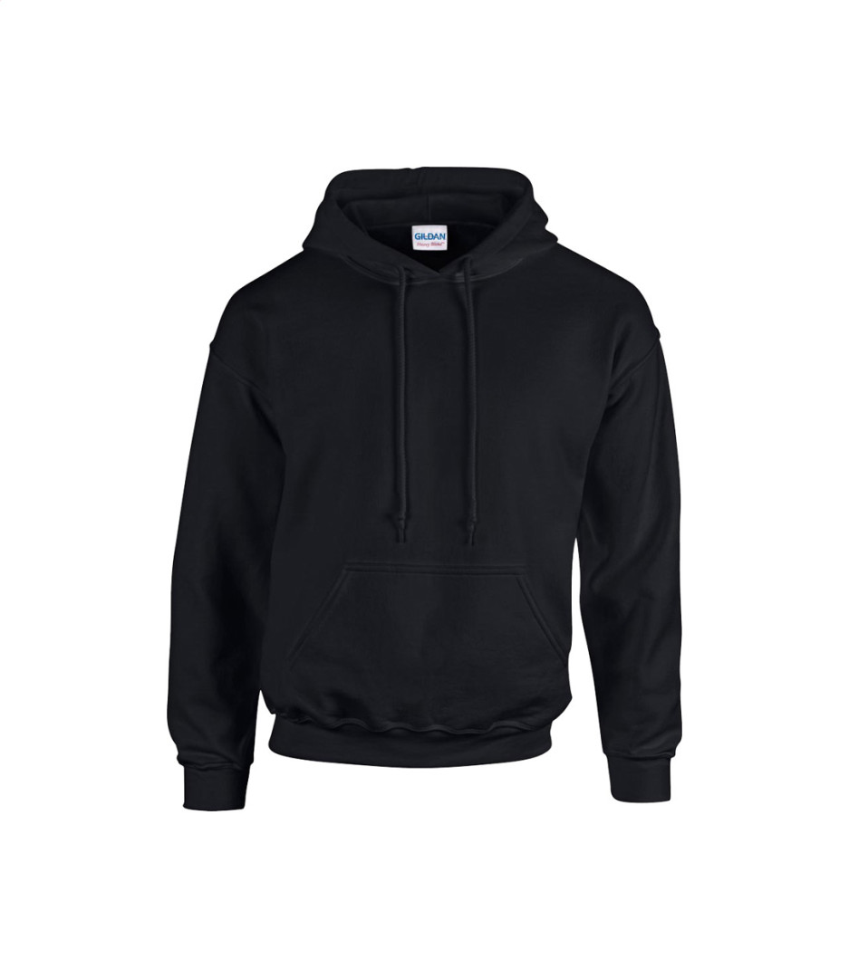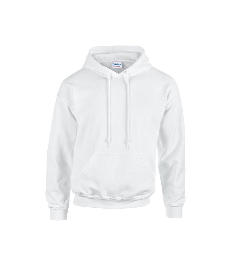 Mikina s kapucí z 50% bavlny a 50% polyesteru s přední kapsou. 271 g/m² (bílá 257 g/m²). Produkt značky Gildan.
