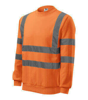 Mikina z fluorescenčního materiálu s hlavicovým rukávem. Vnútorná strana vypočesaná. Spodný lem, manžety rukávů a lem překrčníka zakončený lemem z pleteniny 1: 1. Použité certifikované retroreflexní pásy výrobce 3M. Odev certifikovaný podle normy EN ISO 20 471: 2013 - oblečení s vysokou viditelností (třída 3). Odev certifikovaný podle normy EN ISO 13 688: 2014 - ochranné oděvy. Vhodná na potlač a výšivku.