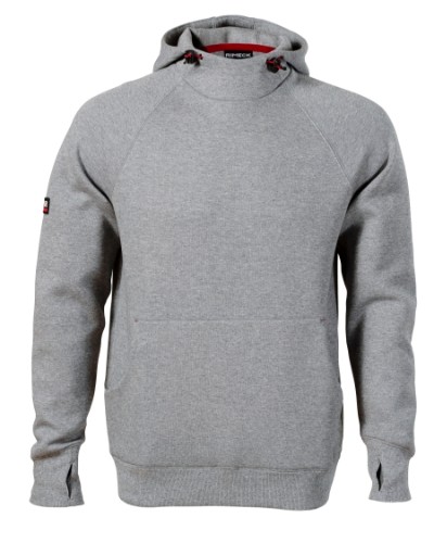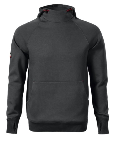 rovný střih s bočními švy, kapuce s podšívkou, elastické stahování, vnitřní strana výstřihu s kontrastní páskou, raglánové rukávy s dvojitým prošitím, klokaní kapsa, 2 skryté kapsy na zip, spodní lem, manžety a výstřih z žebrového úpletu 2:2 s 5 % elastanu, manžety s otvorem na palec, kontrastní prvky Oboustranný úplet Interlock, 80 % bavlna, 20 % polyester.
