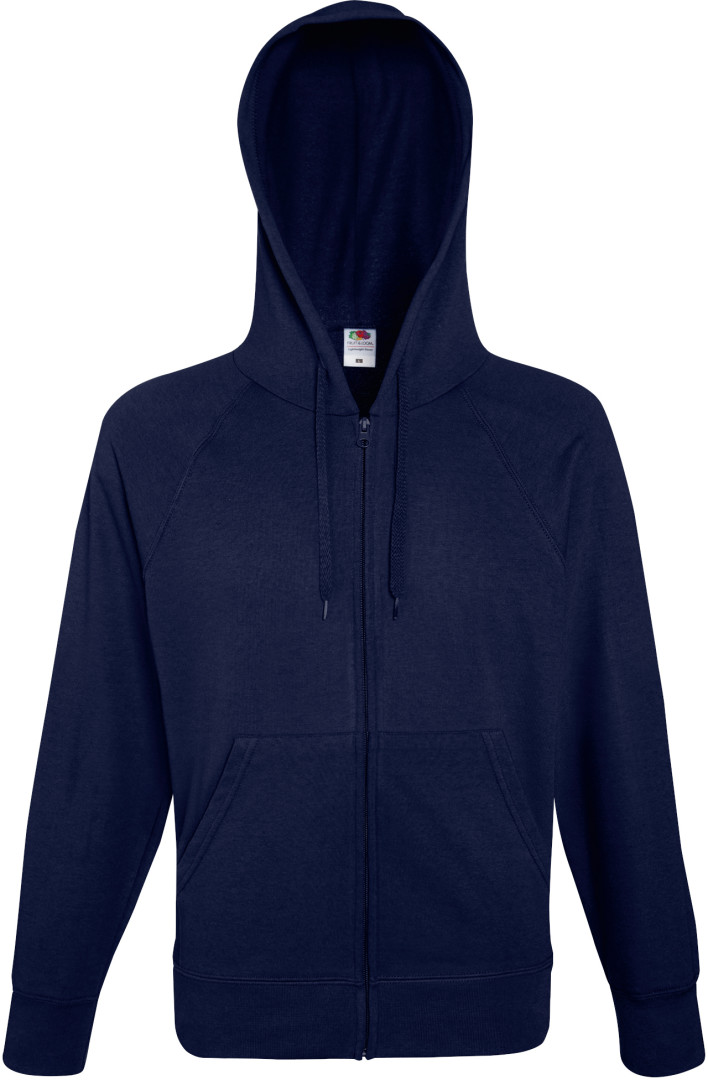 240g/m², 80% bavlna, 20% polyester, francouzské froté kapuce se stejnobarevnou plochou stahovací šňůrkou, raglánový rukáv, manžety ze směsi bavlna/Lycra®-žebrový úplet, 2 postranní kapsy, skrytý zip