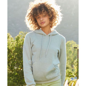 2-vrstvá kapuce s kovovými očky a šňůrkou, ploché šňůrky tón v tónu, 2x2 žebrované manžety a lem, klokaní kapsa, dvojité švy na ramenou, výstřihu a průramcích, 1-barevné lemování podél ramenního švu, vysoká hustota, 3-vrstvá kvalitní teplákovina, předepraná proti srážení, regulující vlhkost a rychleschnoucí, vyrobeno z certifikované bavlny COTTON USA™, štítek TearAway. Materiál: 288g/m², 57% česaná prstencová certifikovaná organická bavlna, 43% recyklovaný polyester.