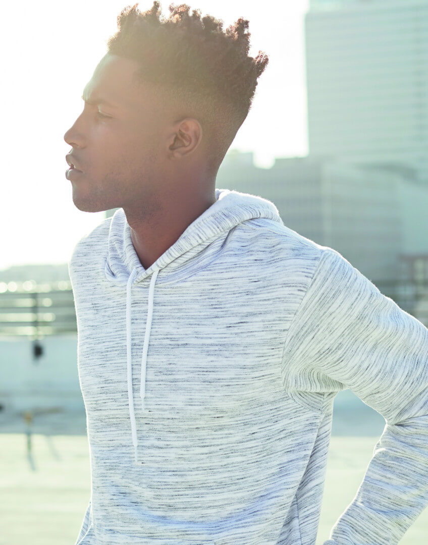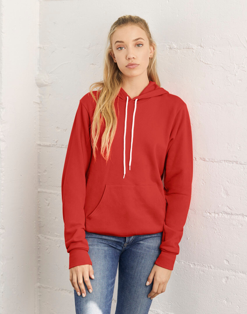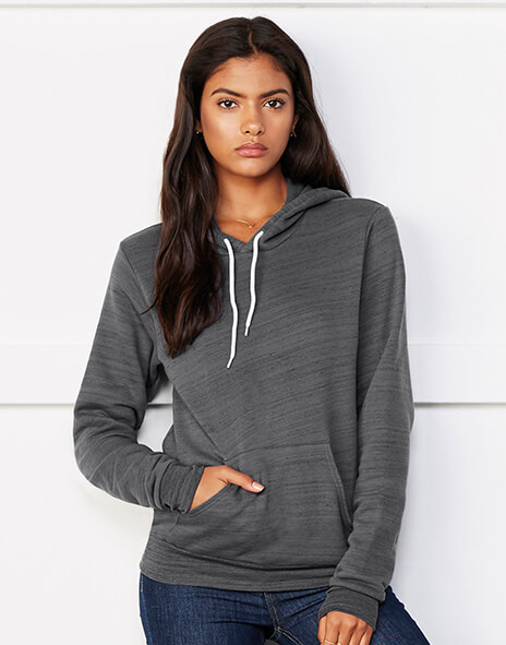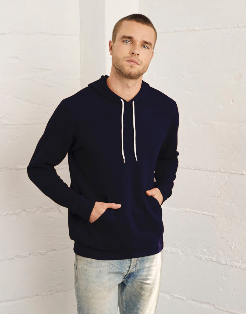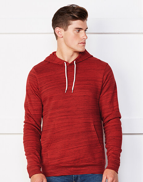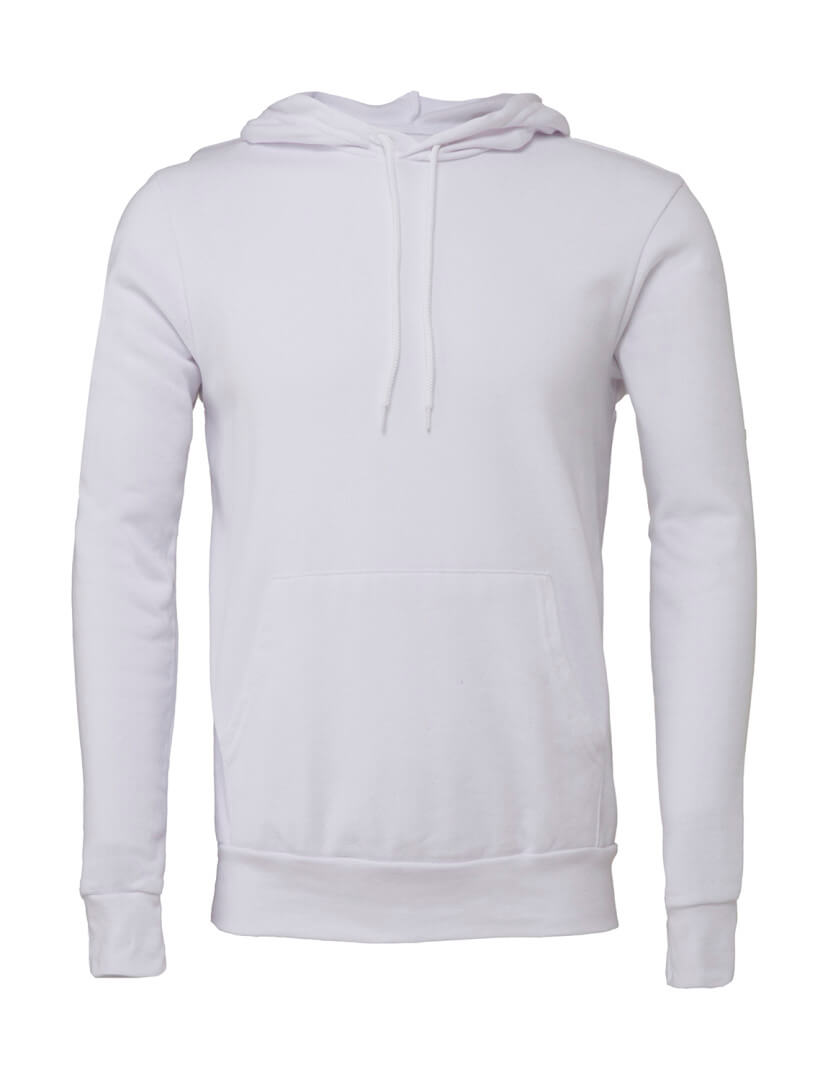 · 220 g / m2 · 60% česaná prstencová bavlna, 40% polyester fleece · barvy Digital: 100% polyester · barvy Marble fleece: 85% česaná prstencová bavlna, 15% polyester · kapuce s bílou šňůrkou · klokaní kapsa · žebrované rukávy a spodní lem · přiléhavý střih