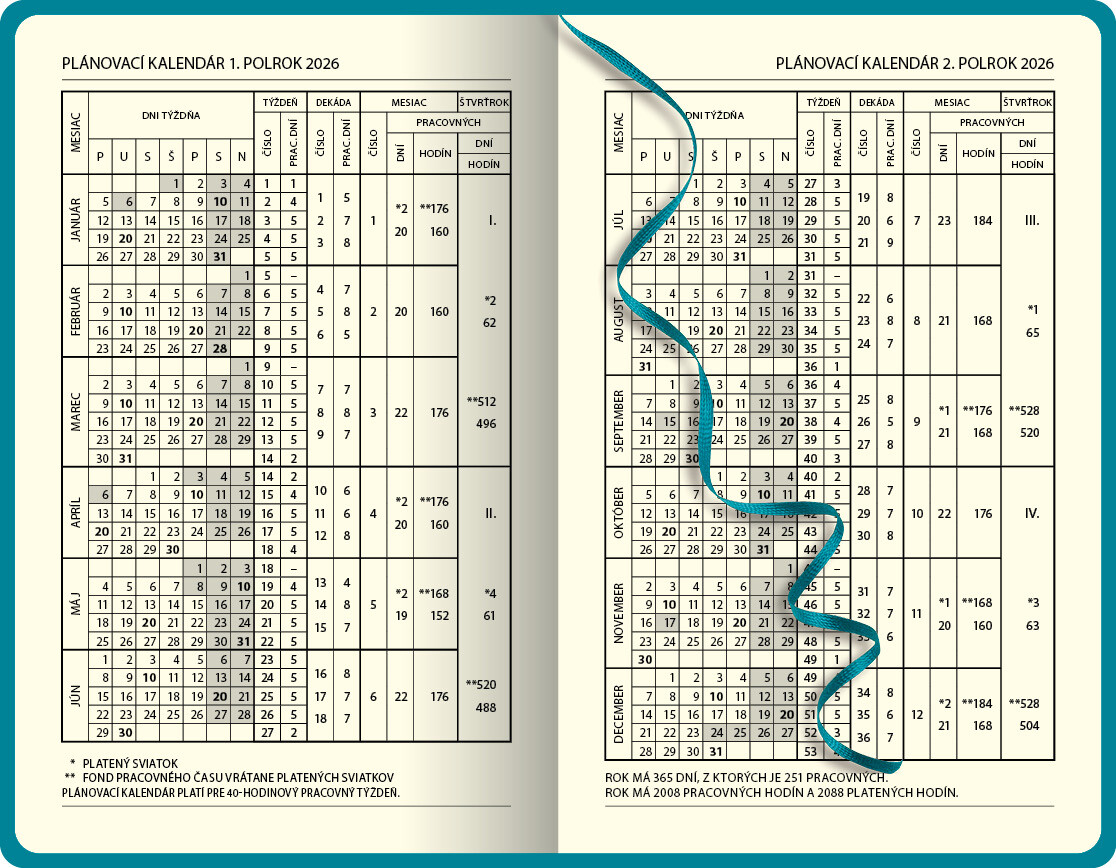 Jedinečný týdenní mini diář potažený vysoce kvalitním termosenzitivním povrchem. Diář je v pevné vazbě s přední deskou z pěnového materiálu, barevnou gumičkou, poutkem na pero a praktickou kapsou. Slovenské přehledné kalendárium.