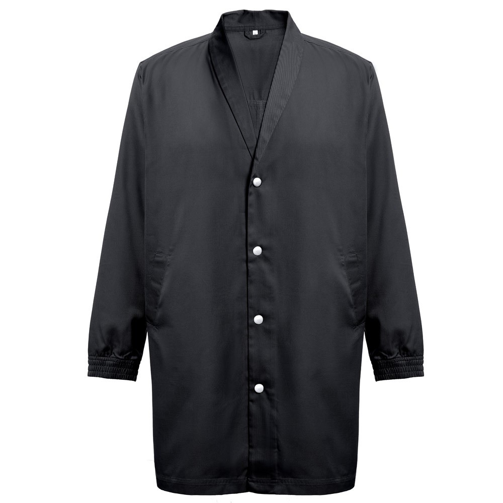 Unisex pracovní plášť. 20% bavlna a 80% polyester: 190 g/m². Stylizovaný límec. Elegantní a stylový střih se 2 bočními kapsami. Elastické manžety. Zapínání na patentky. Zadní rozparek pro větší svobodu pohybu.