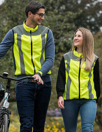 Reflexní vesta Korntex® | Vyhovuje normám ČSN EN ISO 20471:2013 a A1:2016 | Dva vertikální reflexní proužky o šířce 5 cm | Tkanina odrážející světlo na ramenou | S čárovým kódem EAN | Návod k použití je k dispozici ve 24 oficiálních jazycích EU | Jednotlivě balené v polyetylenových sáčcích