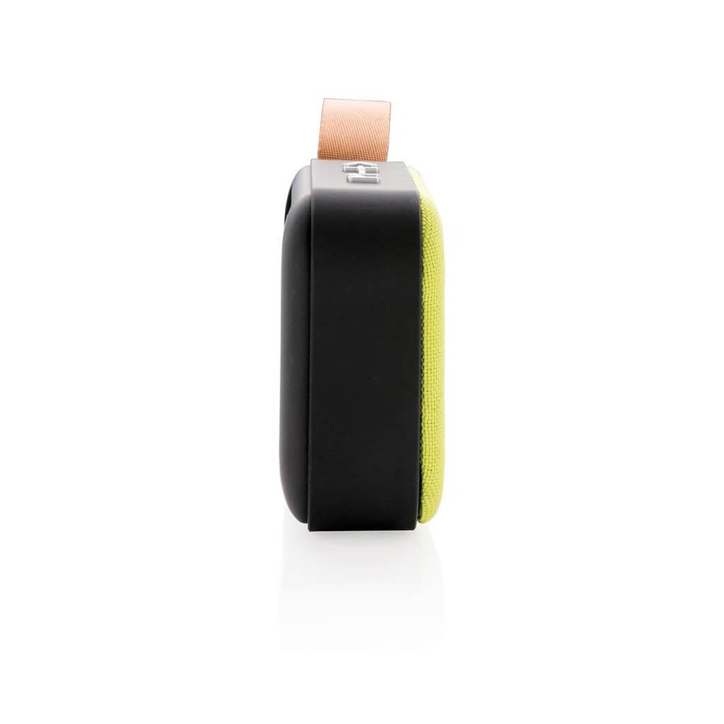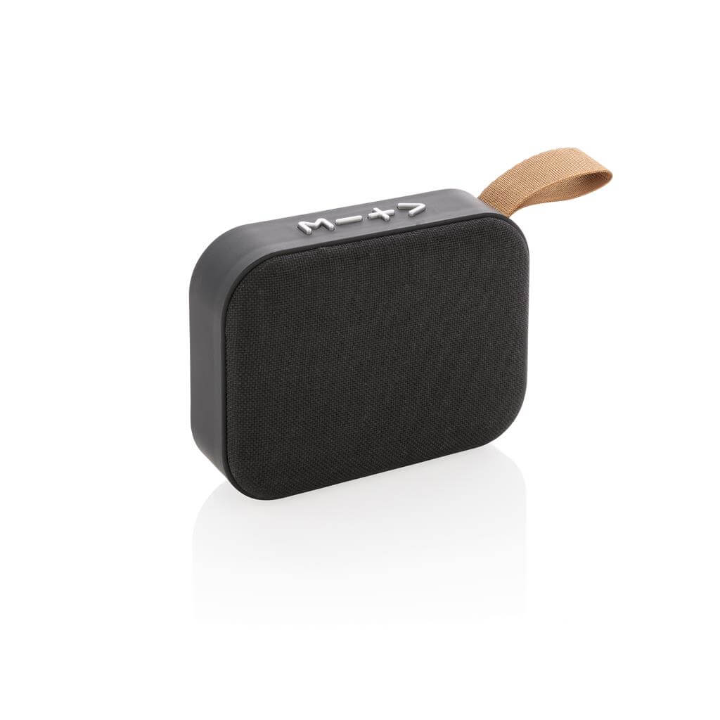 Bezdrátový 3W reproduktor s mřížkou potaženou moderní textilií. Spodní část s gumovými proužky pro lepší přilnavost k povrchu a kvalitu zvuku. BT 2.1 pro snadné bezdrátové připojení až na vzdálenost 10m. Baterie s kapacitou 300 mAh umožňující přehrávání po dobu až 5 hodin. Včetně nabíjecího a zvukového kabelu pro případ přímého drátového propojení s telefonem. Vyrobeno z ABS. Kompatibilní se všemi telefony. 1 baterií typu Li-ion súčasťou balenia. PMS color 1: Black, PMS color 2: Black PMS color 1: Cool Grey 11, PMS color 2: Black PMS color 1: 298, PMS color 2: Black PMS color 1: 389, PMS color 2: Black