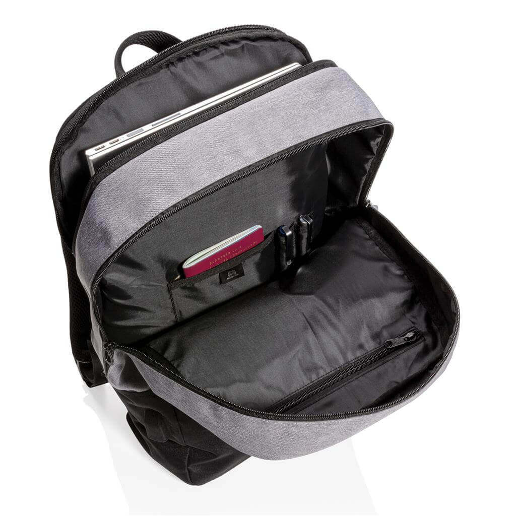 Stylový městský batoh ideální na každodenní cestování do práce. Vyrobený z odolného materiálu bez použití PVC. Hlavní prostor na zip s polstrovaným oddílem na 15,6" notebook, přední kapsa na každodenní drobnosti. Integrovaný USB port pro pohodlné nabíjení telefonu na cestách. PMS color 1: Black