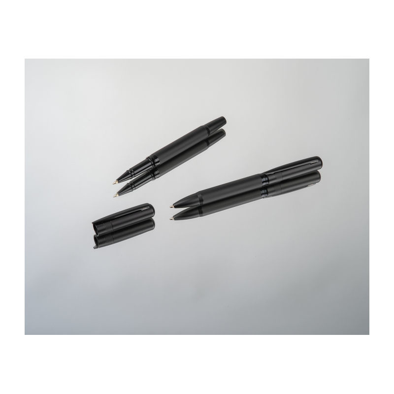 Vysoce kvalitní psací sada sestávající z rollerballu pera a kuličkového pera v elegantním designu. Vylepšeno logem MoLu, tištěným v matné černé barvě na černém kroužku. Perfektní pro stylové psaní a exkluzivní dárek! V exkluzivním dárkovém balení as 2letou zárukou.