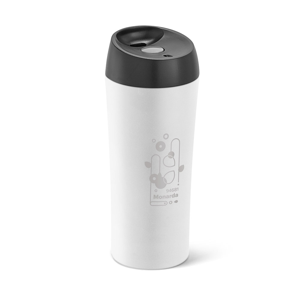 Cestovní hrnek z nerezové oceli a PP s dvojitou stěnou, víčkem se systémem proti vylití a protiskluzovou spodní částí. Hrnek má objem až 470 ml a dodává se v dárkové krabičce.
