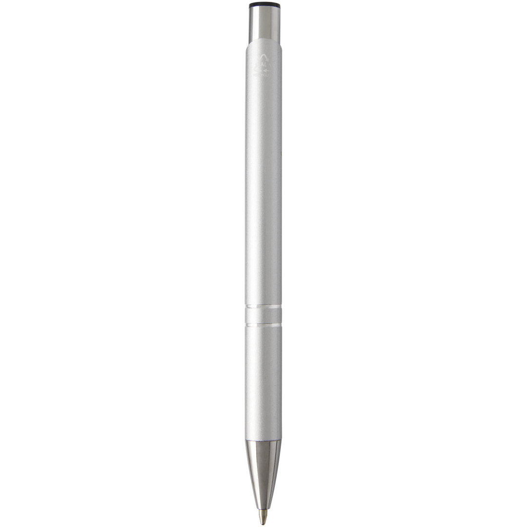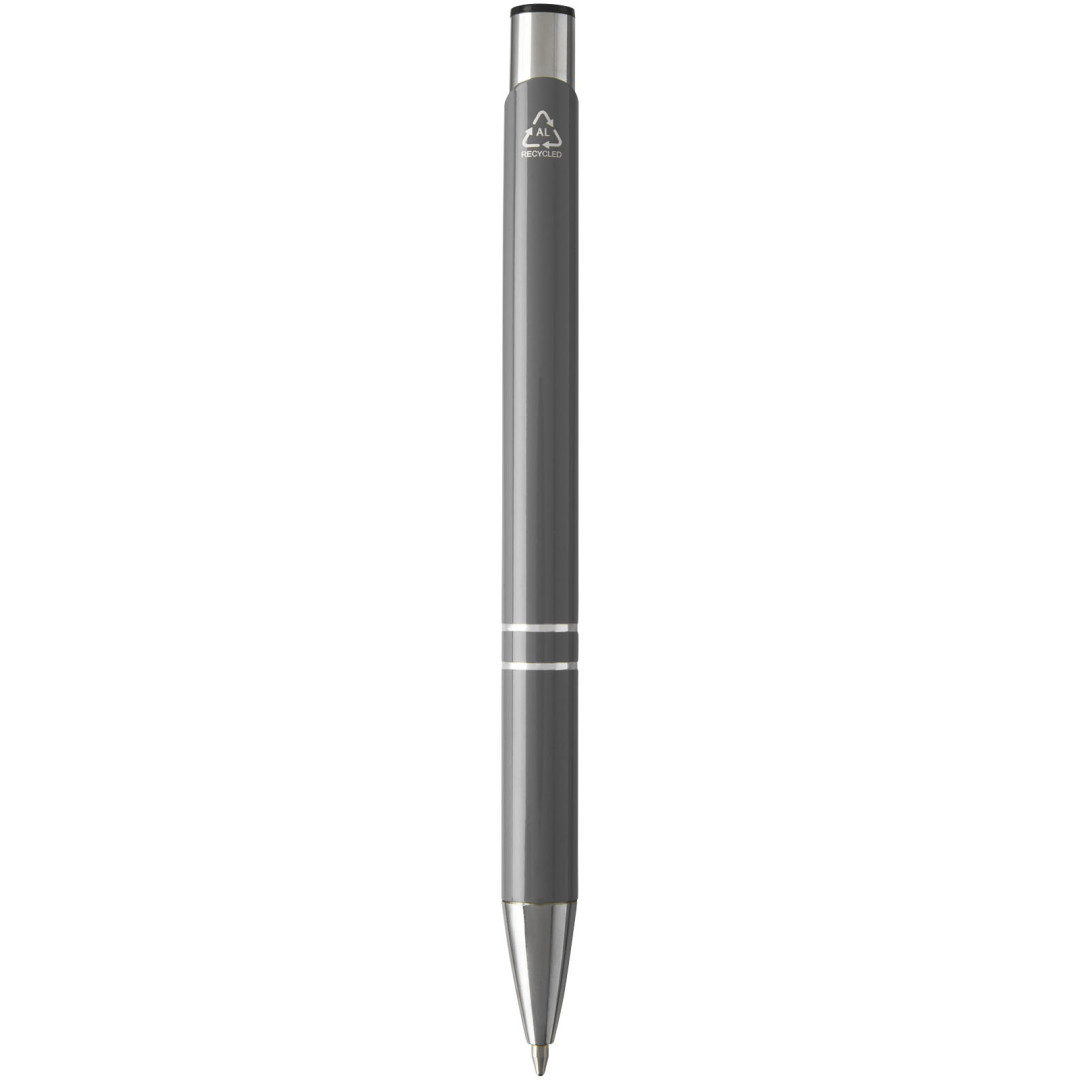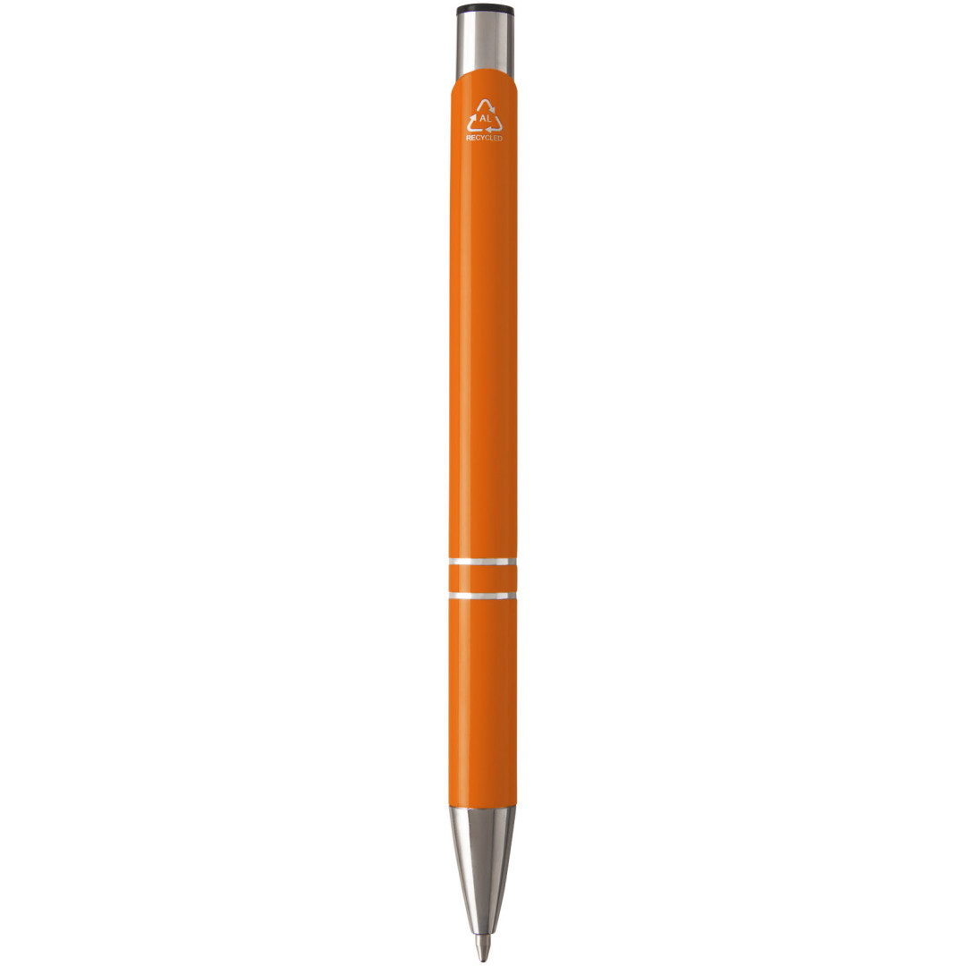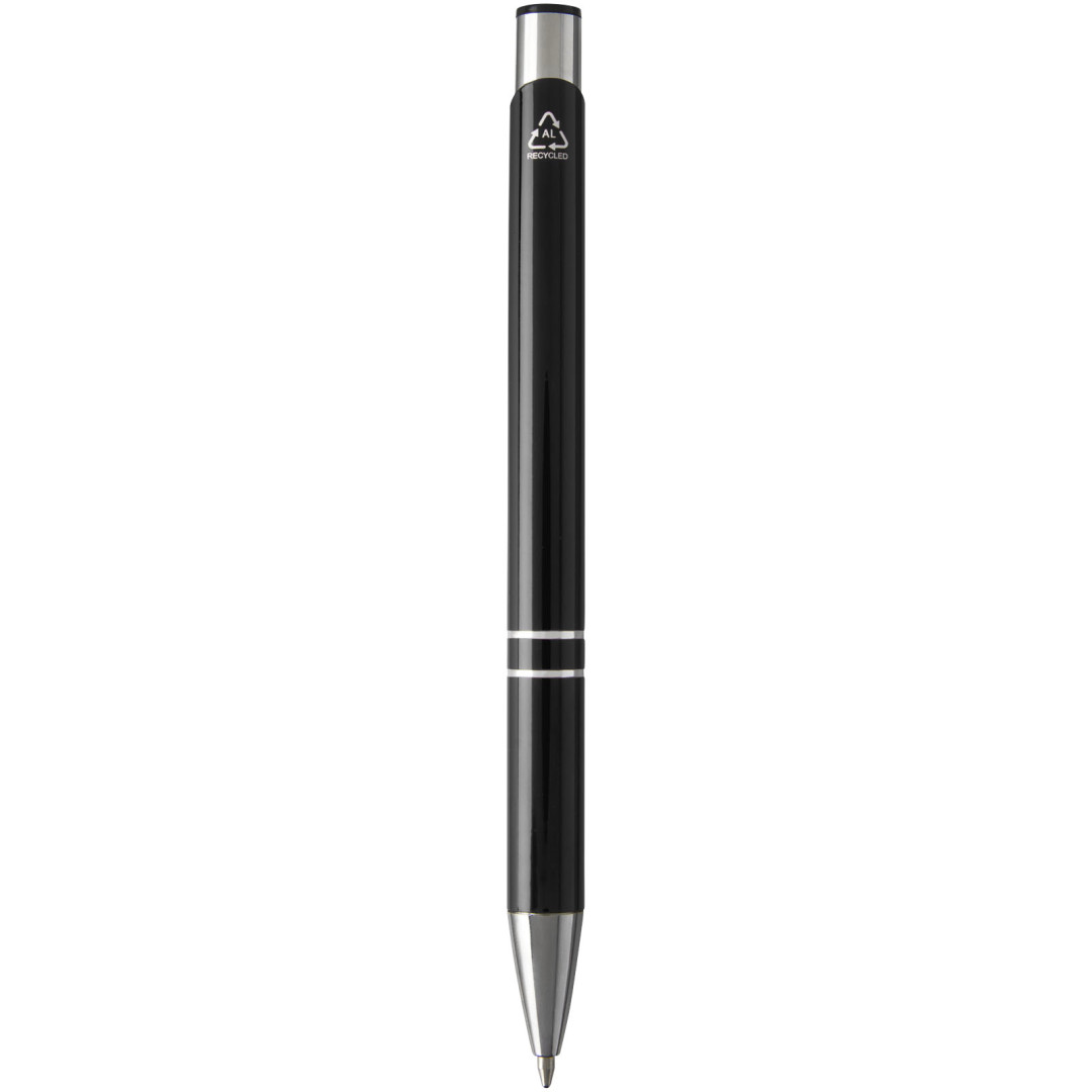 Kuličkové pero vyrobené z recyklovaného hliníku, s lakovanou a leštěnou povrchovou úpravou a nápadnými detaily z chromu. Recyklovaný hliník vyžaduje méně energie než výroba hliníku ze surovin, což z něj činí udržitelnější variantu. Snižuje také množství odpadu na skládkách a pomáhá šetřit přírodní zdroje s cílem snížit emise skleníkových plynů. Černý inkoust. Délka psaní: 600 metrů.