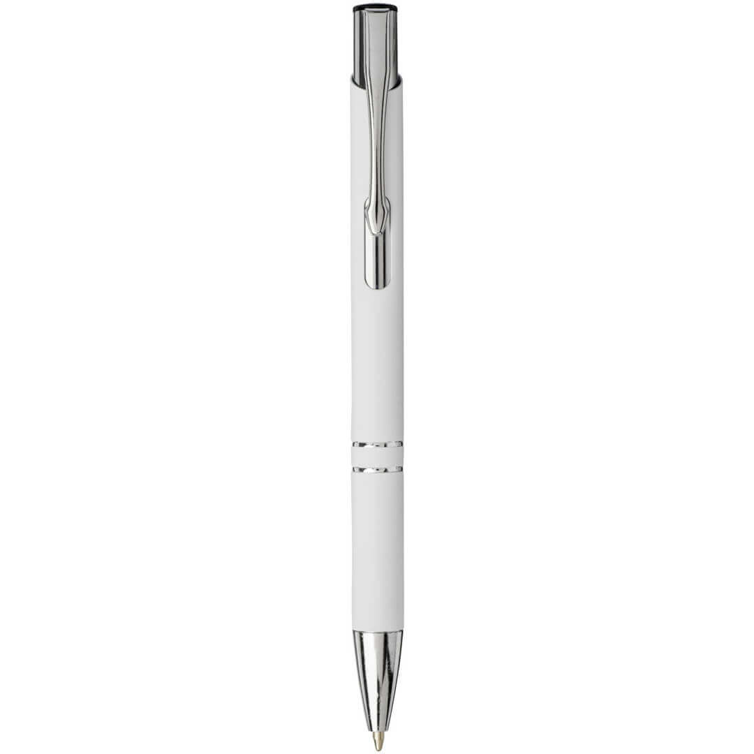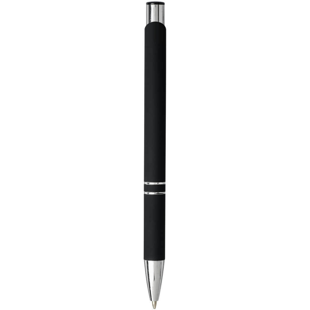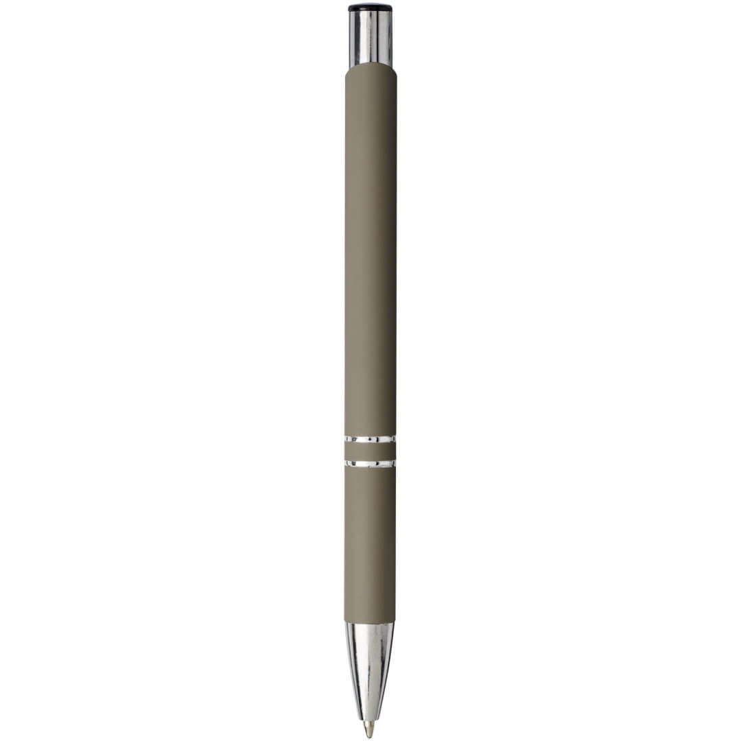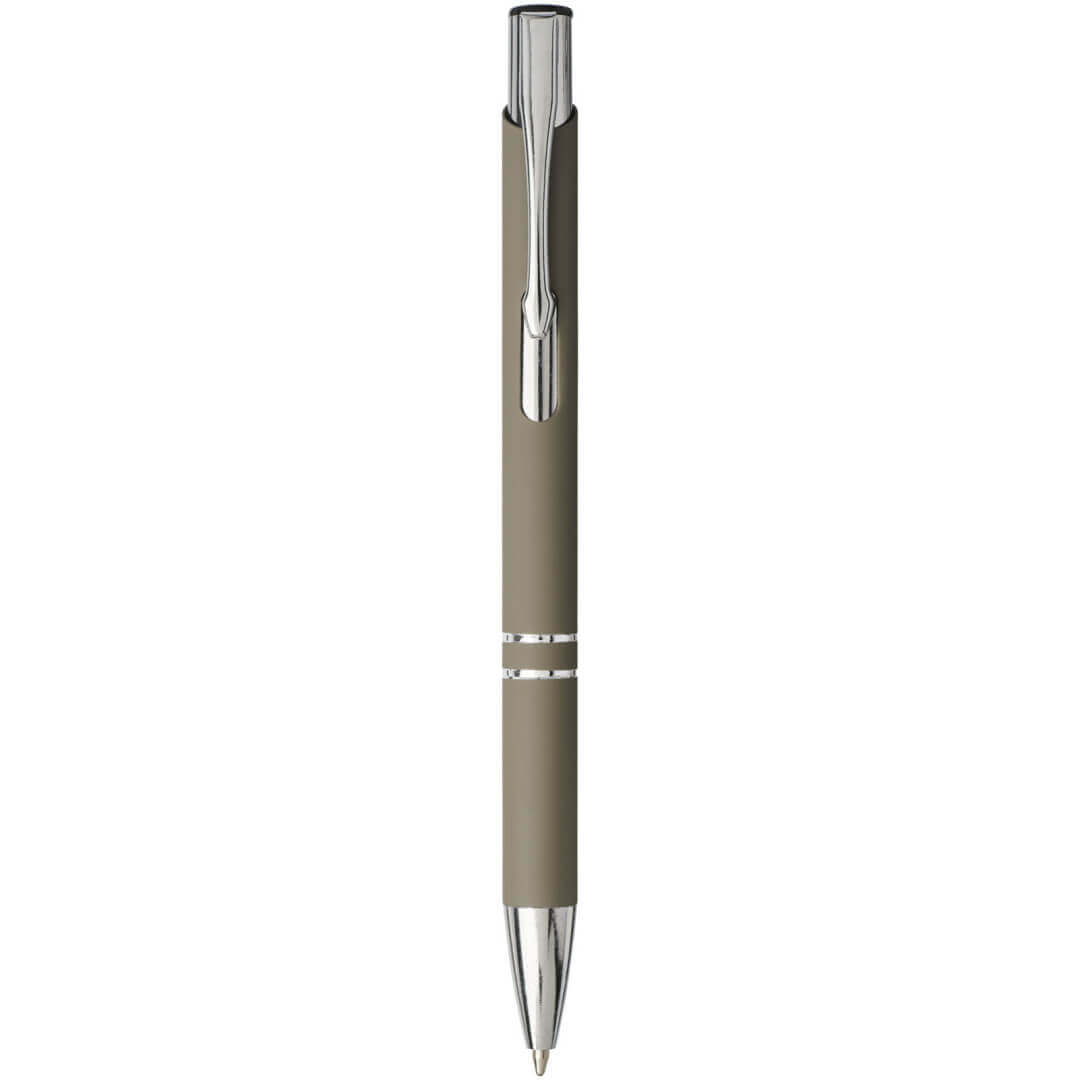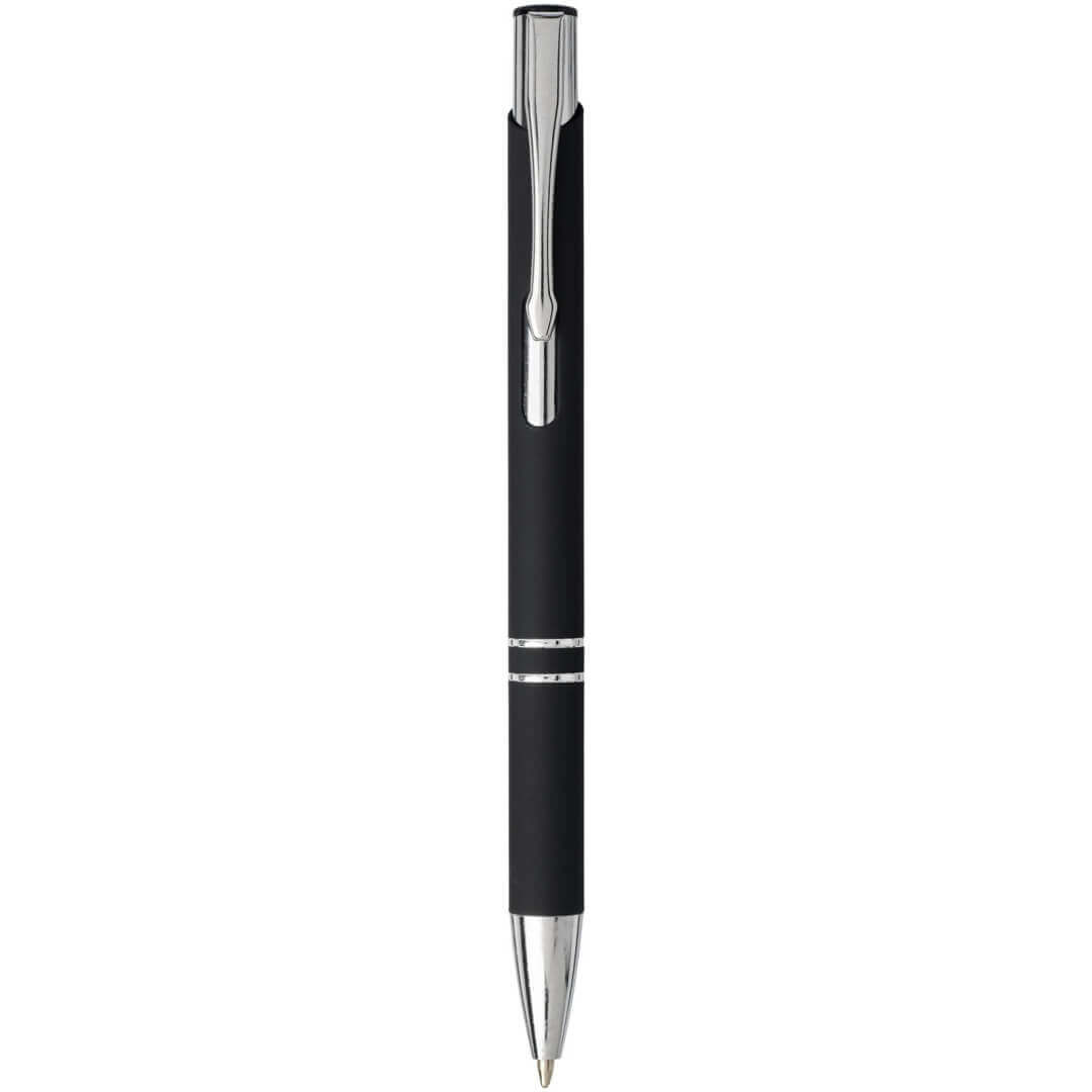 Díky pogumovanému povrchu má pero měkký úchop a laserové rytí odhalí stříbrnou spodní vrstvu. Kuličkové pero se stiskacím mechanismem, povrchem potaženým černou pryží, detaily z chromu a horní částí z černého ABS plastu. Široká a oblíbená řada Moneta je dostupná v různých stylech a provedeních. Hliník.