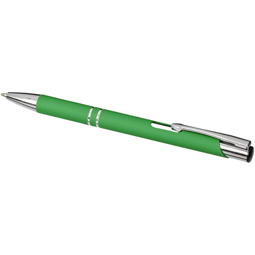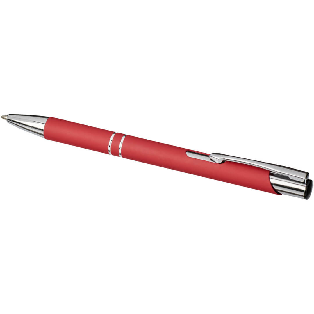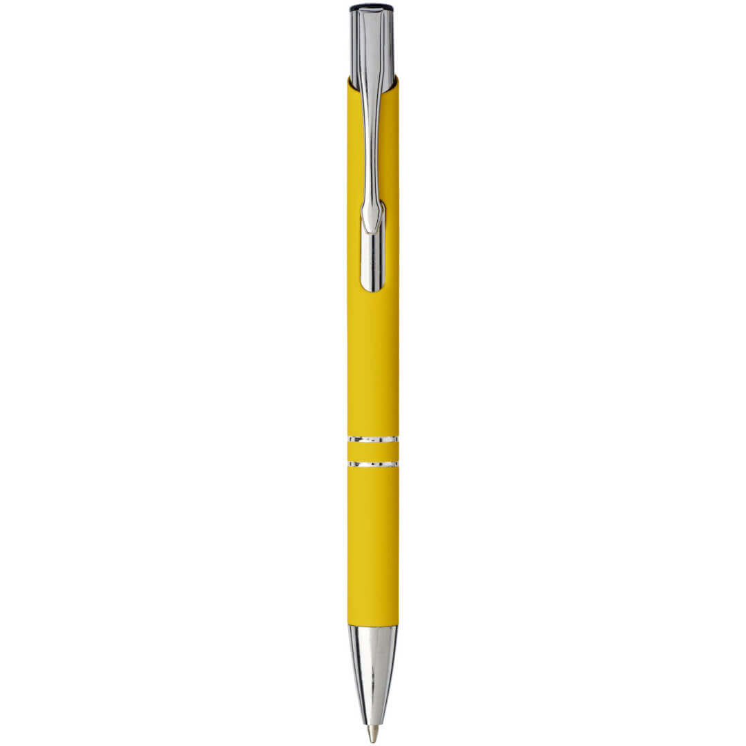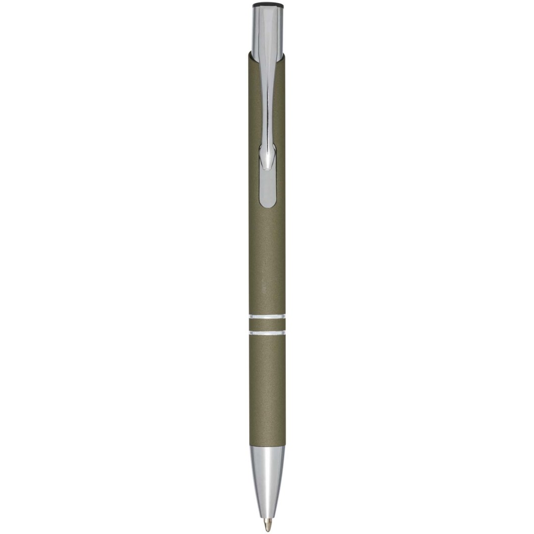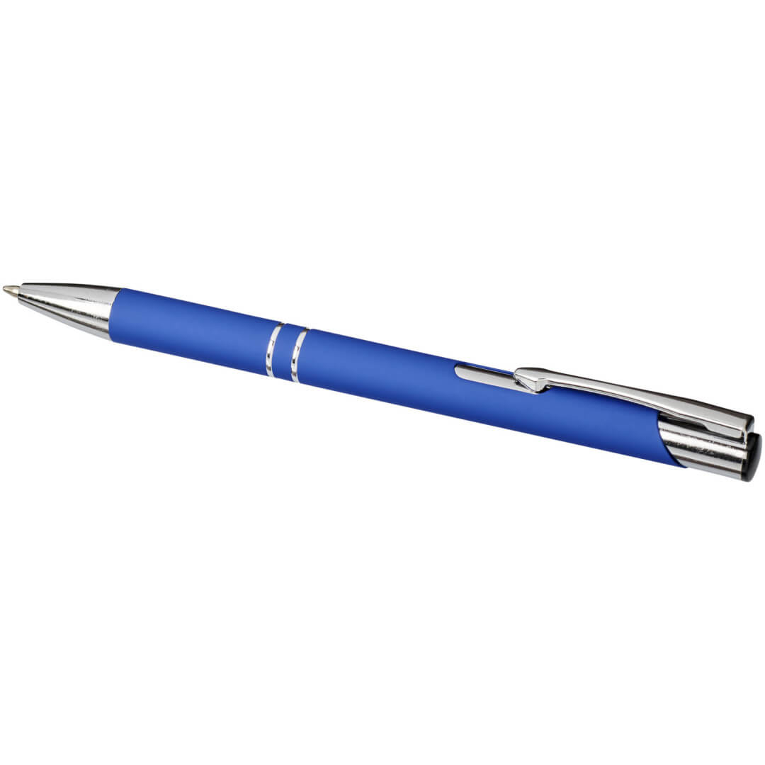 Díky pogumovanému povrchu má pero měkký úchop a laserové rytí odhalí stříbrnou spodní vrstvu. Kuličkové pero se stiskacím mechanismem, povrchem potaženým černou pryží, detaily z chromu a horní částí z černého ABS plastu. Široká a oblíbená řada Moneta je dostupná v různých stylech a provedeních. Hliník.