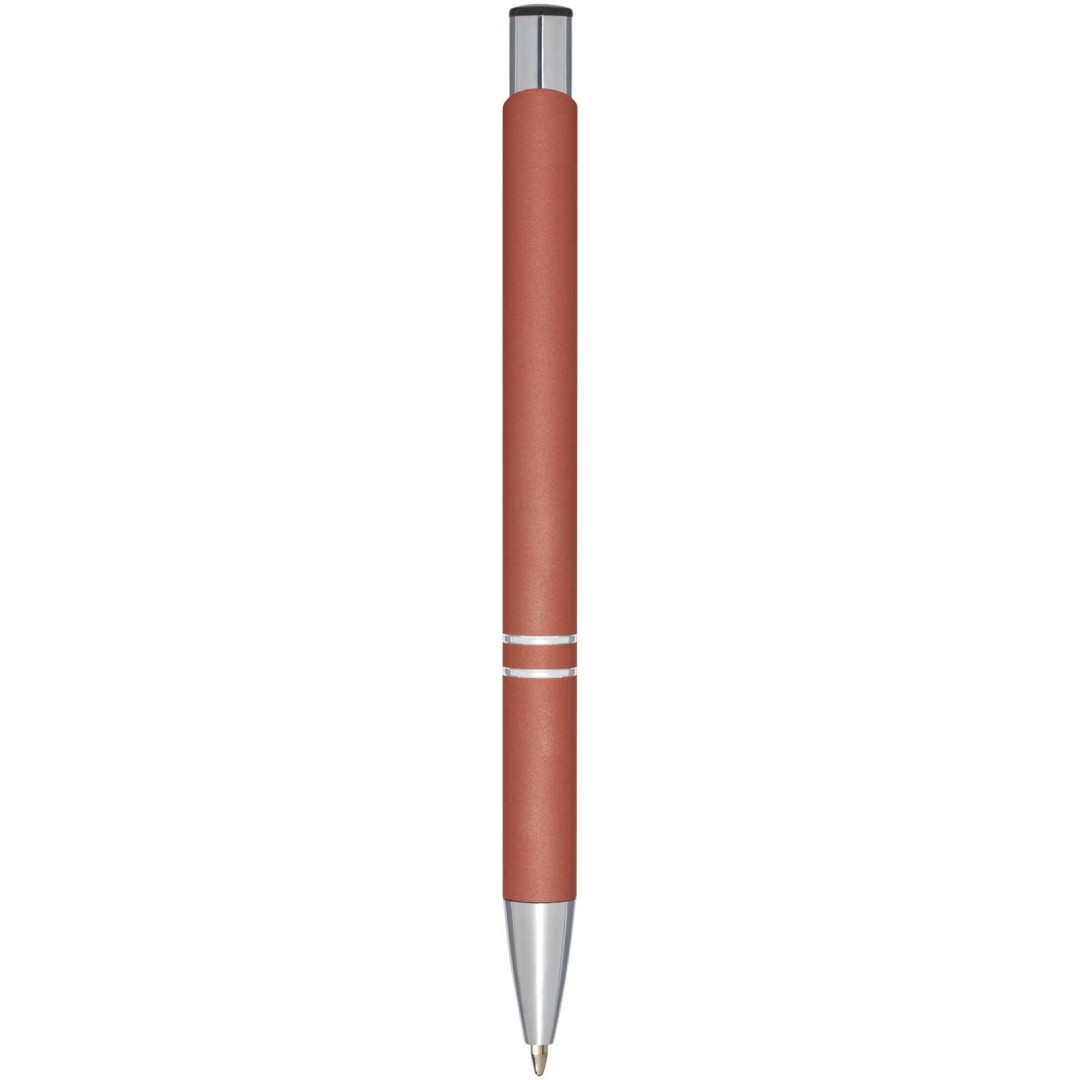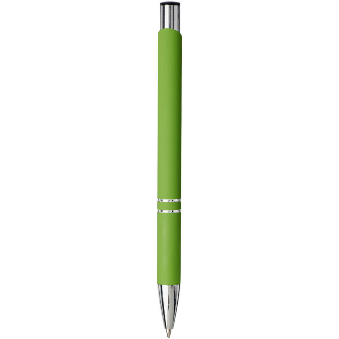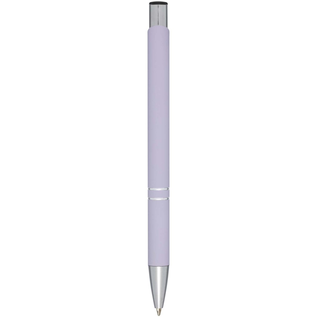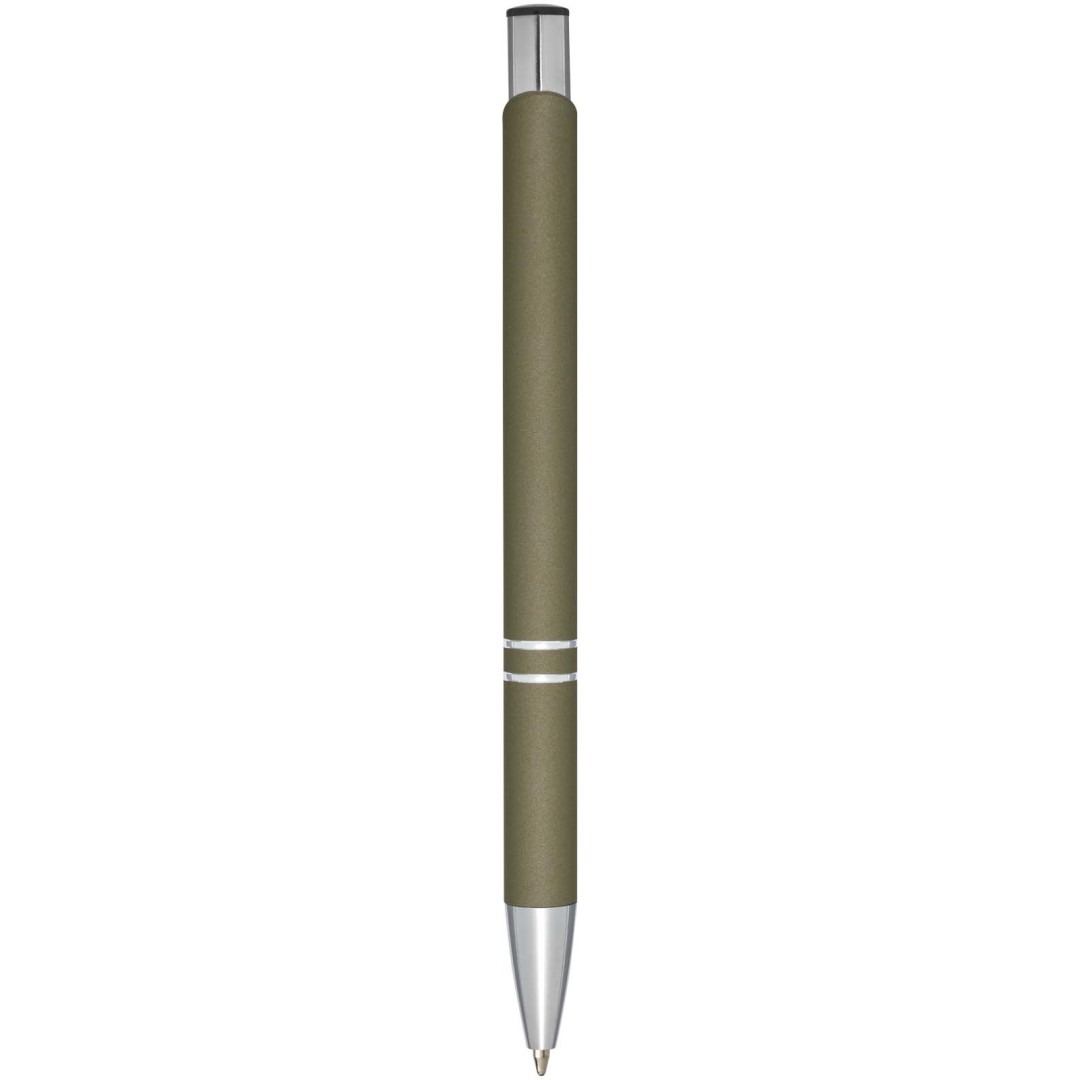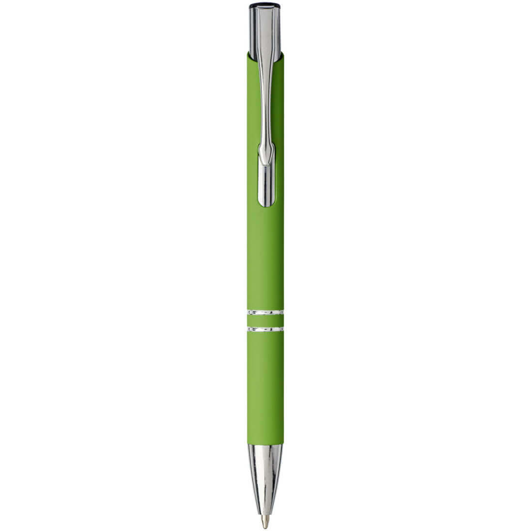 Díky pogumovanému povrchu má pero měkký úchop a laserové rytí odhalí stříbrnou spodní vrstvu. Kuličkové pero se stiskacím mechanismem, povrchem potaženým černou pryží, detaily z chromu a horní částí z černého ABS plastu. Široká a oblíbená řada Moneta je dostupná v různých stylech a provedeních. Hliník.