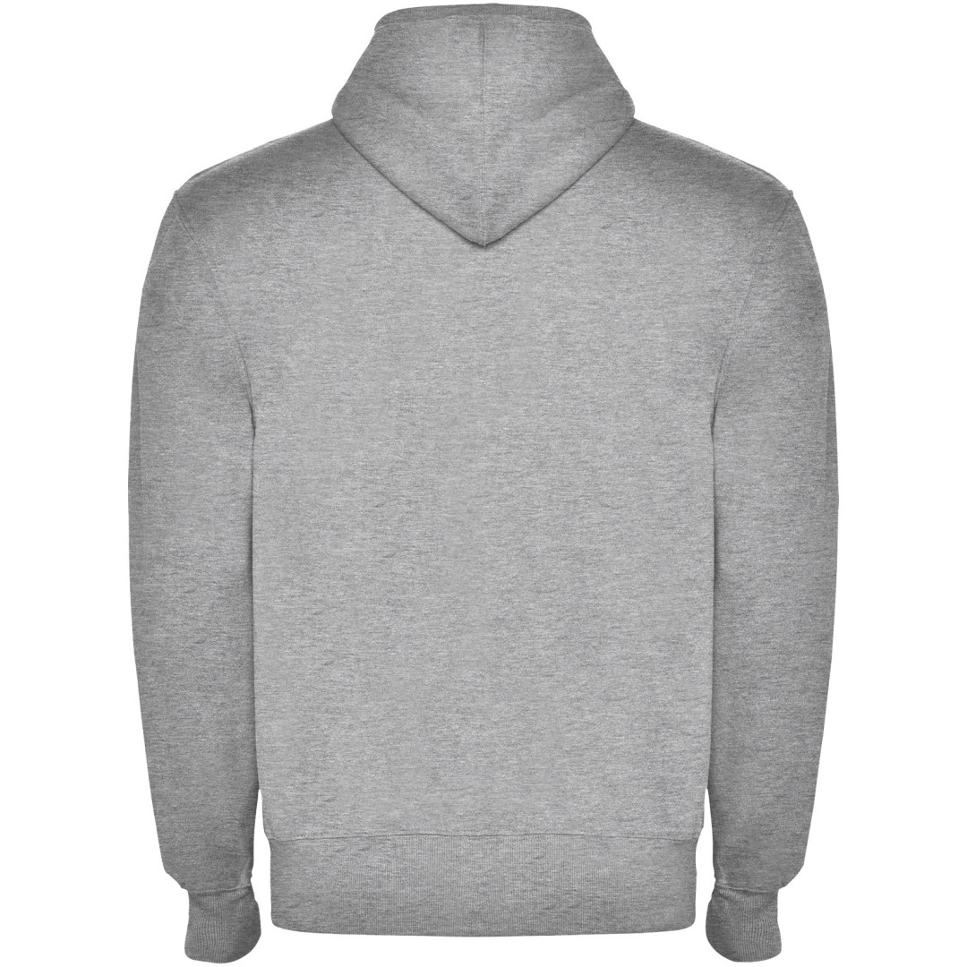 Mikina s kapucí, vysokým výstřihem a celorozepínacím zipem. Žebrované detaily v kapuci a lemování kapes. Kapsa ve stylu klokanky. Manžety a pas s žebrováním 2x2. K dispozici jsou dětské velikosti. Odnímatelný štítek. Model měří 184 cm a má na sobě velikost L.