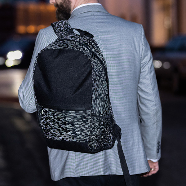 Městský batoh z polyesteru s doplňky z tkaniny s reflexní nití. Součástí je velká hlavní kapsa, vnitřní kapsa a dvě menší kapsy na drobnosti. Zvenku je přední kapsa na zip a dvě postranní kapsy ze síťoviny. Zipy jsou pogumované. Měkké ramenní popruhy jsou pokryté síťovinou.