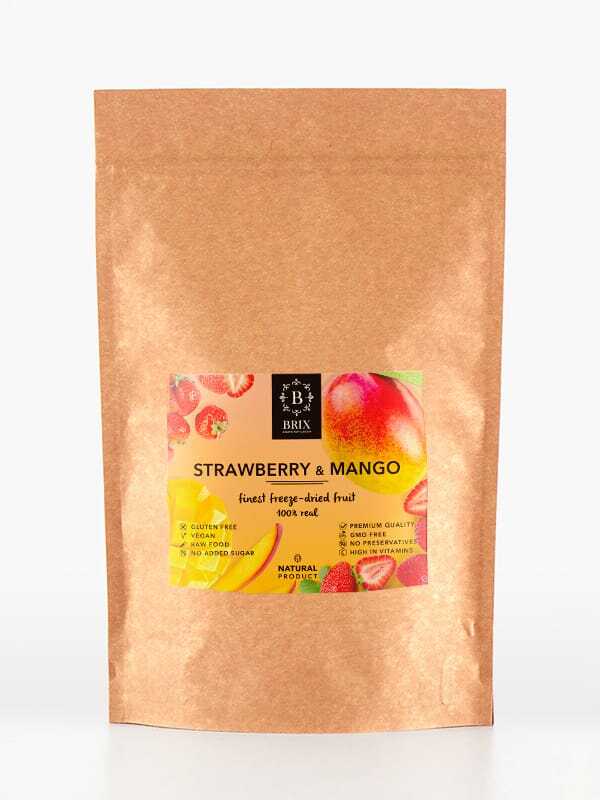 Složení: mrazem sušené mango 60%, mrazem sušená jahoda 40%.