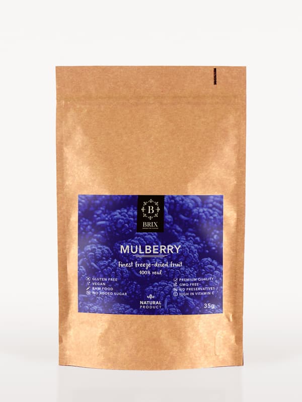 Složení: 100% moruša černá dehydrovaná procesem lyofilizace (proces sušení mrazem).