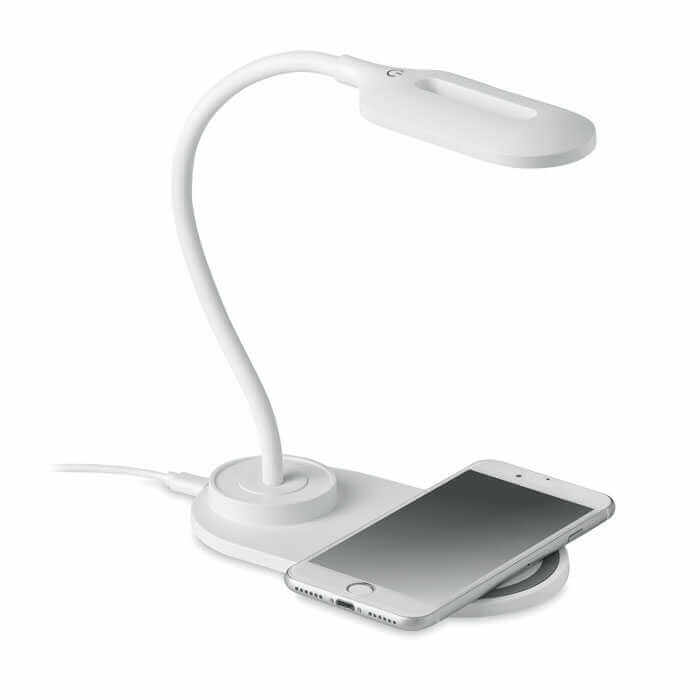 Stolní lampa s moderním vzhledem z ABS materiálu s 10 LED světly a 10W bezdrátovou nabíječkou. Dotyková tlačítka pro zapnutí světla jsou integrována uvnitř stojanu, takže je lze ovládat podobně jako dotykový displej. Pro nabíjení baterie mobilního zařízení ho jednoduše umístěte na stojan lampy. Výstupní signál: Svítidlo je vybaveno vestavěnou baterií, která je určena k napájení: DC 9V/1,1A (10W) pro rychlé nabíjení. Kompatibilní s nejnovějšími zařízeními Android, iPhone® 8 a novějšími. Rozměry 16x8,4x24,5 cm.
