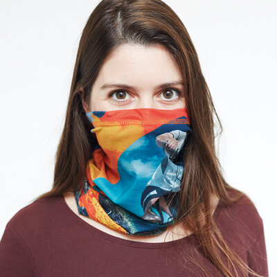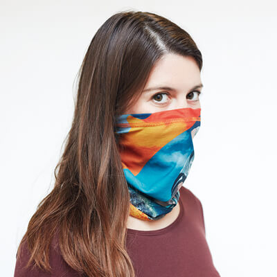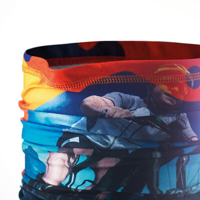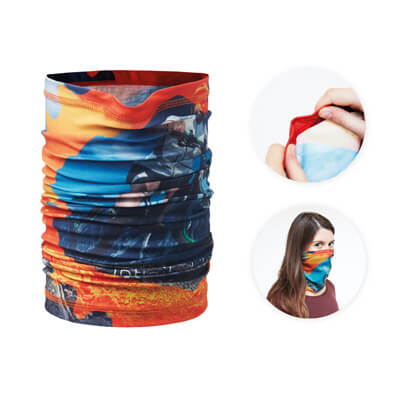 Multifunkční šátek s klipem na nos, s potiskem 1 strany. Cena zahrnuje sublimační potisk šátku na jedné straně. Šátek můžeme potisknout 1 až 3 sólovými barvami nebo plnobarevně.