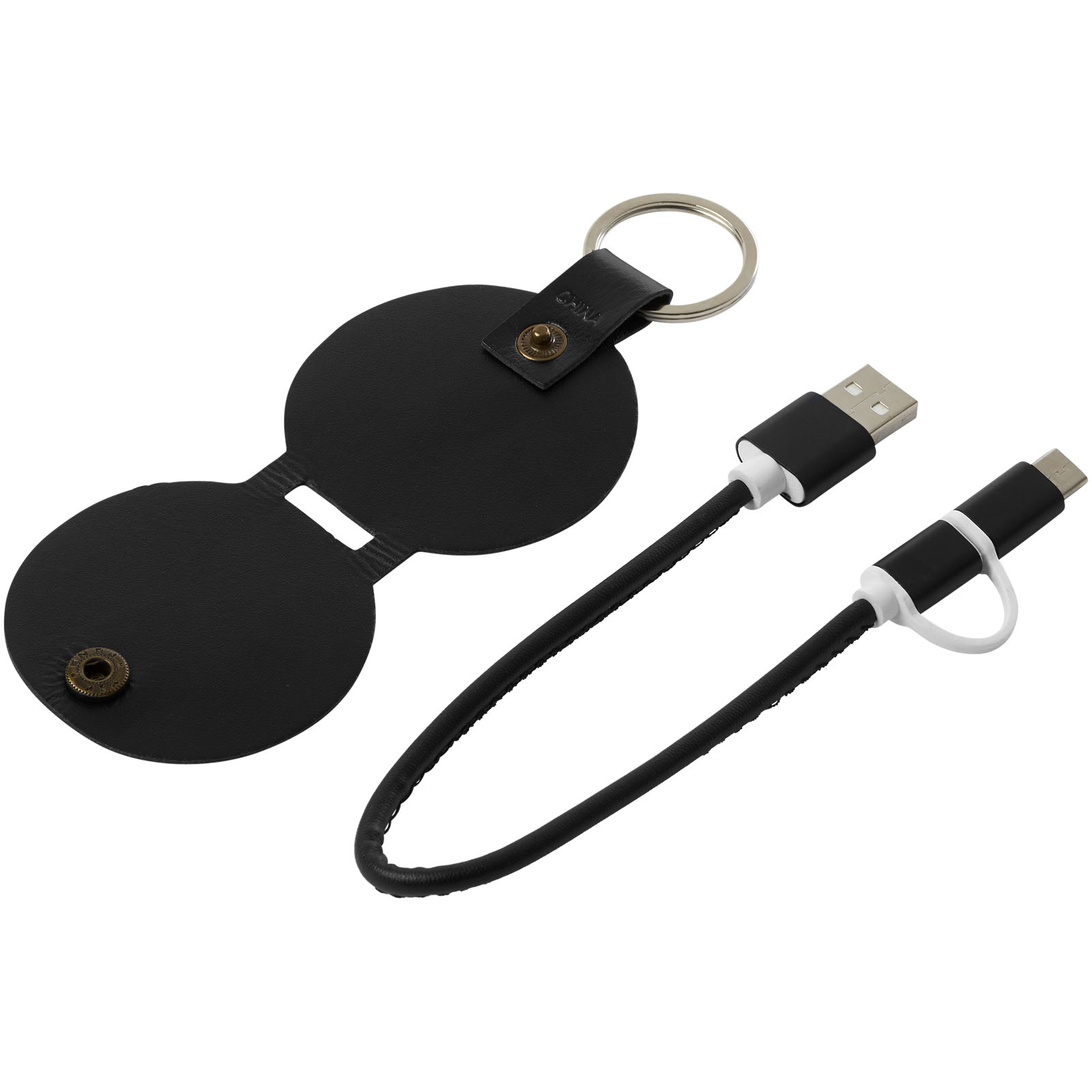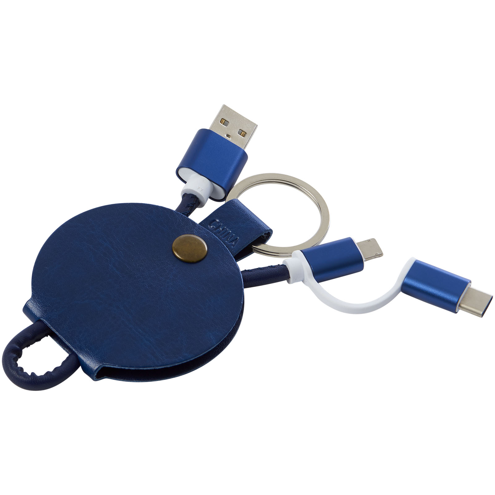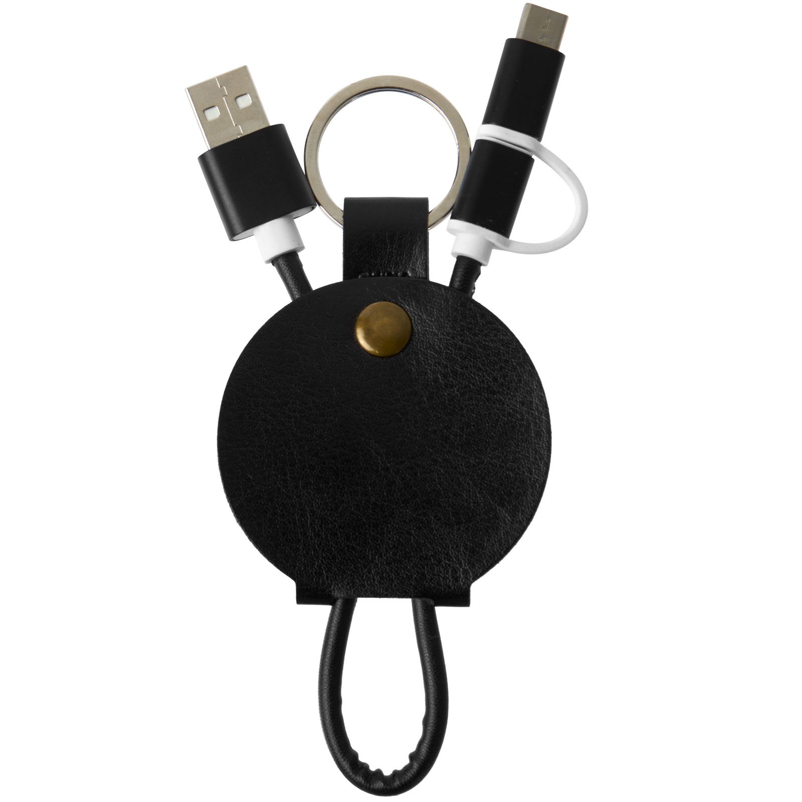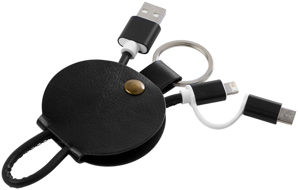 Nabíjecí kabel Gist 3 v 1. Kabel Gist 3 v 1 je uložený v měkkém ochranném krytu, který zahrnuje koncovku USB typu C a duální kompatibilní koncovku 2 v 1 pro zařízení Apple iOS a Android. Kroužek připojuje nabíjecí sadu ke klíčům nebo tašce. Délka kabelu: 20 cm. PU. PU Plastic.
