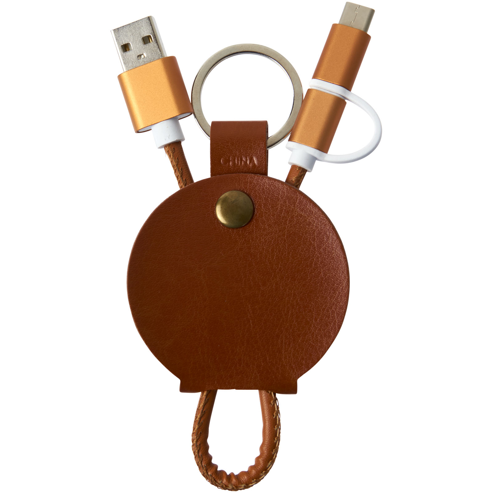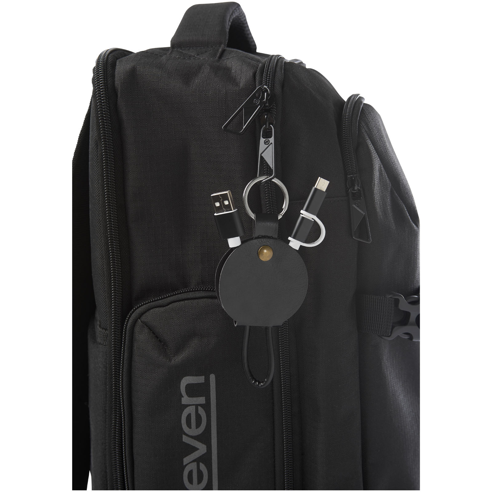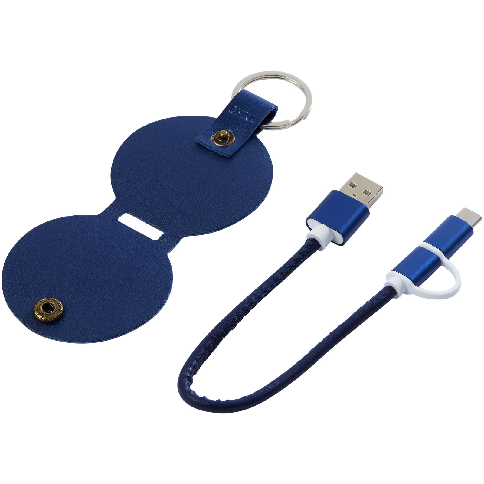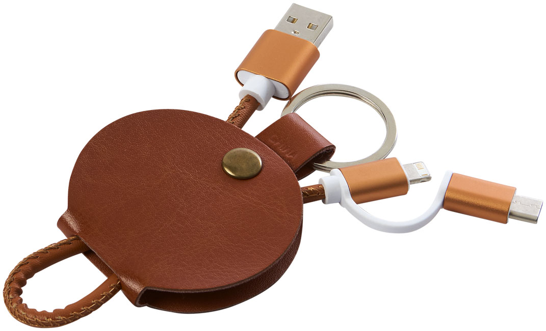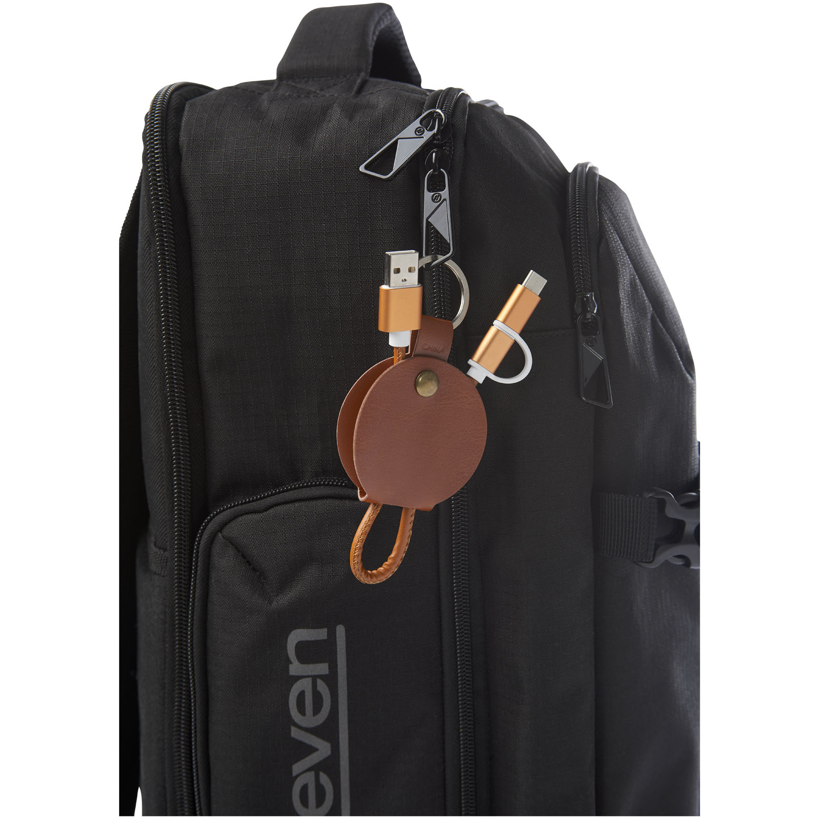 Nabíjecí kabel Gist 3 v 1. Kabel Gist 3 v 1 je uložený v měkkém ochranném krytu, který zahrnuje koncovku USB typu C a duální kompatibilní koncovku 2 v 1 pro zařízení Apple iOS a Android. Kroužek připojuje nabíjecí sadu ke klíčům nebo tašce. Délka kabelu: 20 cm. PU. PU Plastic.