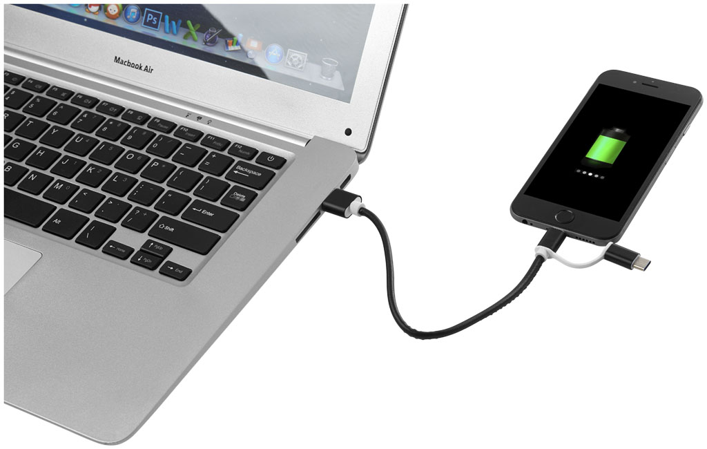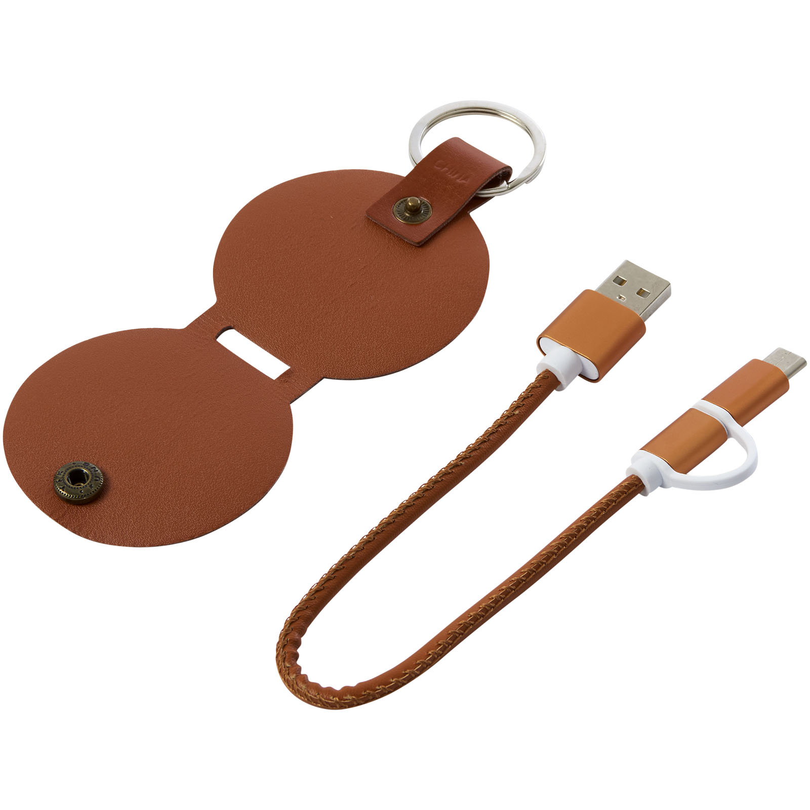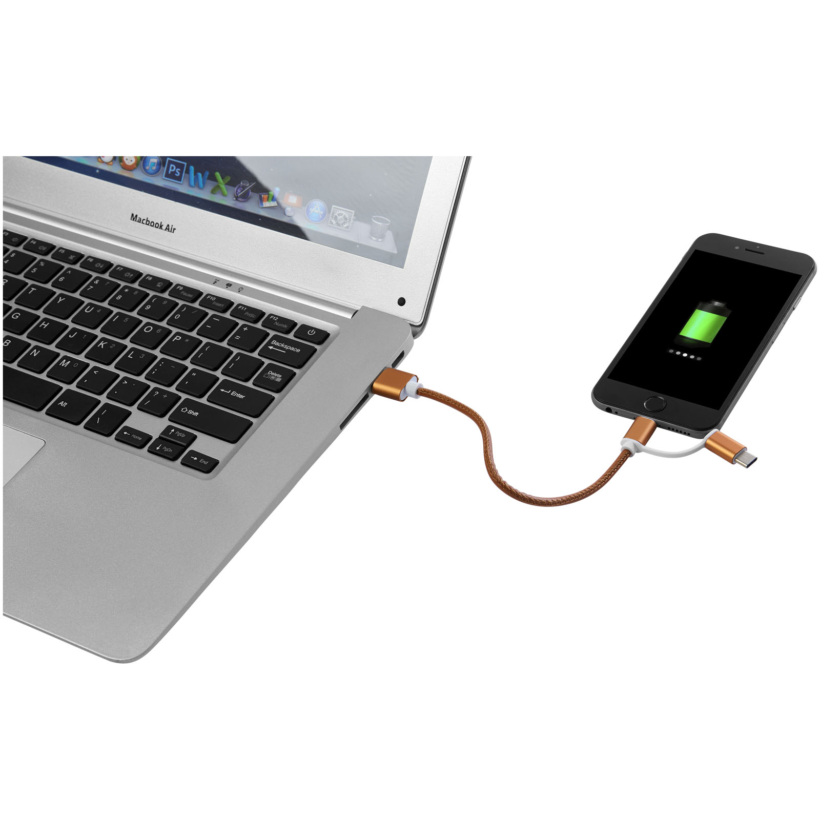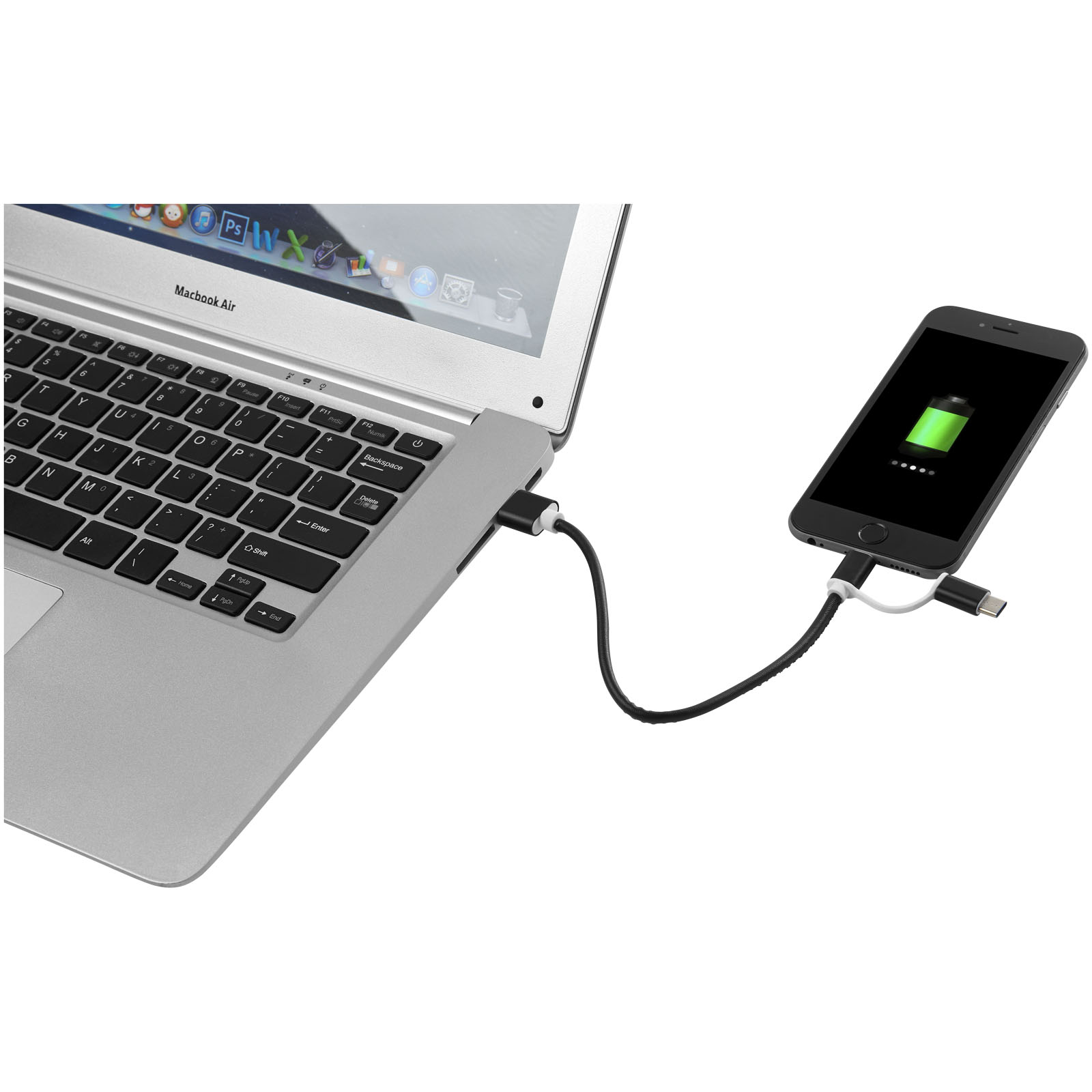Nabíjecí kabel Gist 3 v 1. Kabel Gist 3 v 1 je uložený v měkkém ochranném krytu, který zahrnuje koncovku USB typu C a duální kompatibilní koncovku 2 v 1 pro zařízení Apple iOS a Android. Kroužek připojuje nabíjecí sadu ke klíčům nebo tašce. Délka kabelu: 20 cm. PU. PU Plastic.