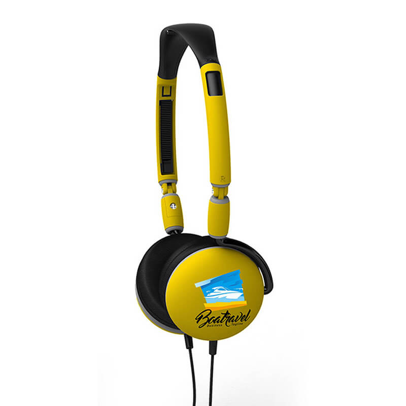Náhlavní skládací sluchátka s možností CMYK potisku. Výkonná a skvěle hrající uzavřená náhlavní sluchátka. Špičkovou kvalitu reprodukce umožňují 40 mm magnetické měniče a přesný tvar náušníků. Sluchátkový most je skládací na třech místech a jeho vrchol je, stejně jako okraje náušníků polstrován pro větší komfort nošení. Kvalitní sluchátka doplňuje pozlacený jack a kvalitní kabel s textilním opletením.