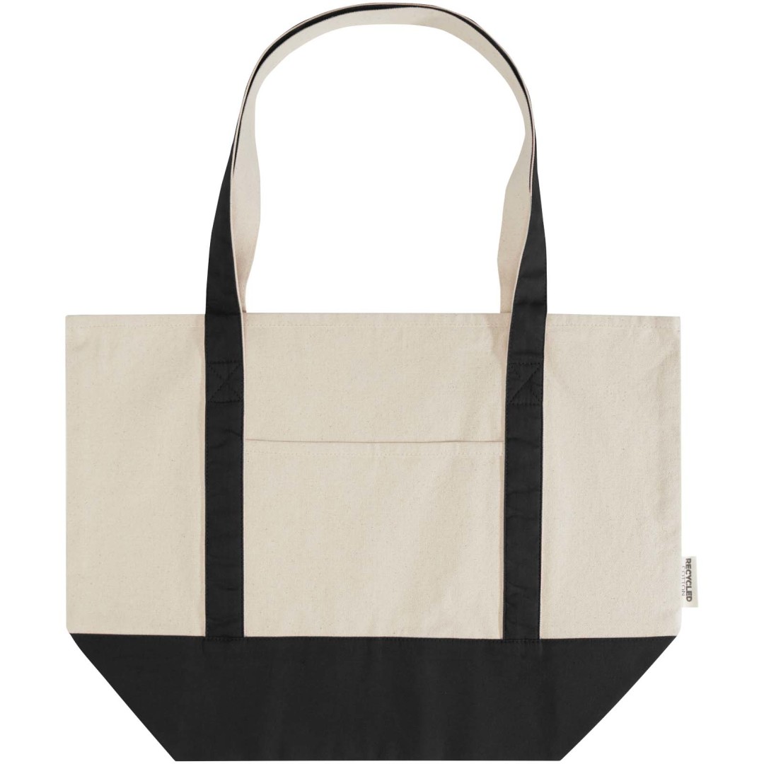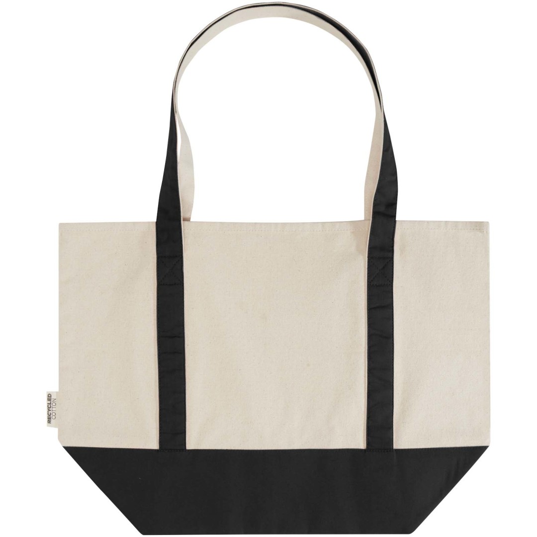 Nákupní taška Sam vyrobená ze 100% recyklované bavlny s certifikací GRS je ideální taškou na piknik nebo na nákup potravin. Díky gramáži bavlny 320 g/m² je taška pevná, má dlouhou životnost a díky dvojitým uchům je vhodná pro nošení těžkých předmětů v hlavní přihrádce. Metody tisku na tuto tašku jsou také certifikovány GRS, což zajišťuje, že je celý dodavatelský řetězec transparentní a certifikovaný. Délka rozbalovacího ucha: 30 cm. Nosnost až 10 kg. Objemová kapacita: 15 litrů. Vyrobeno v Indii.