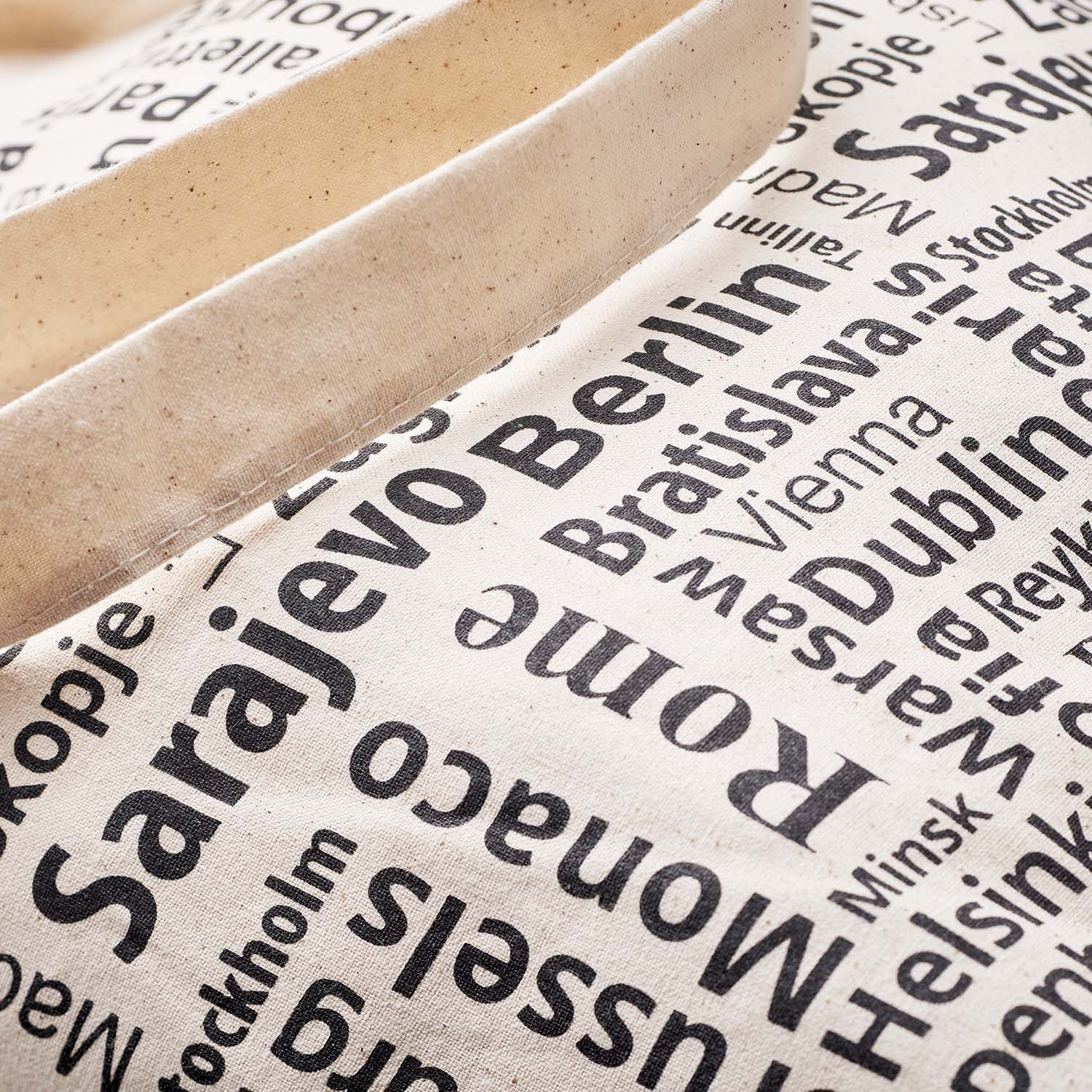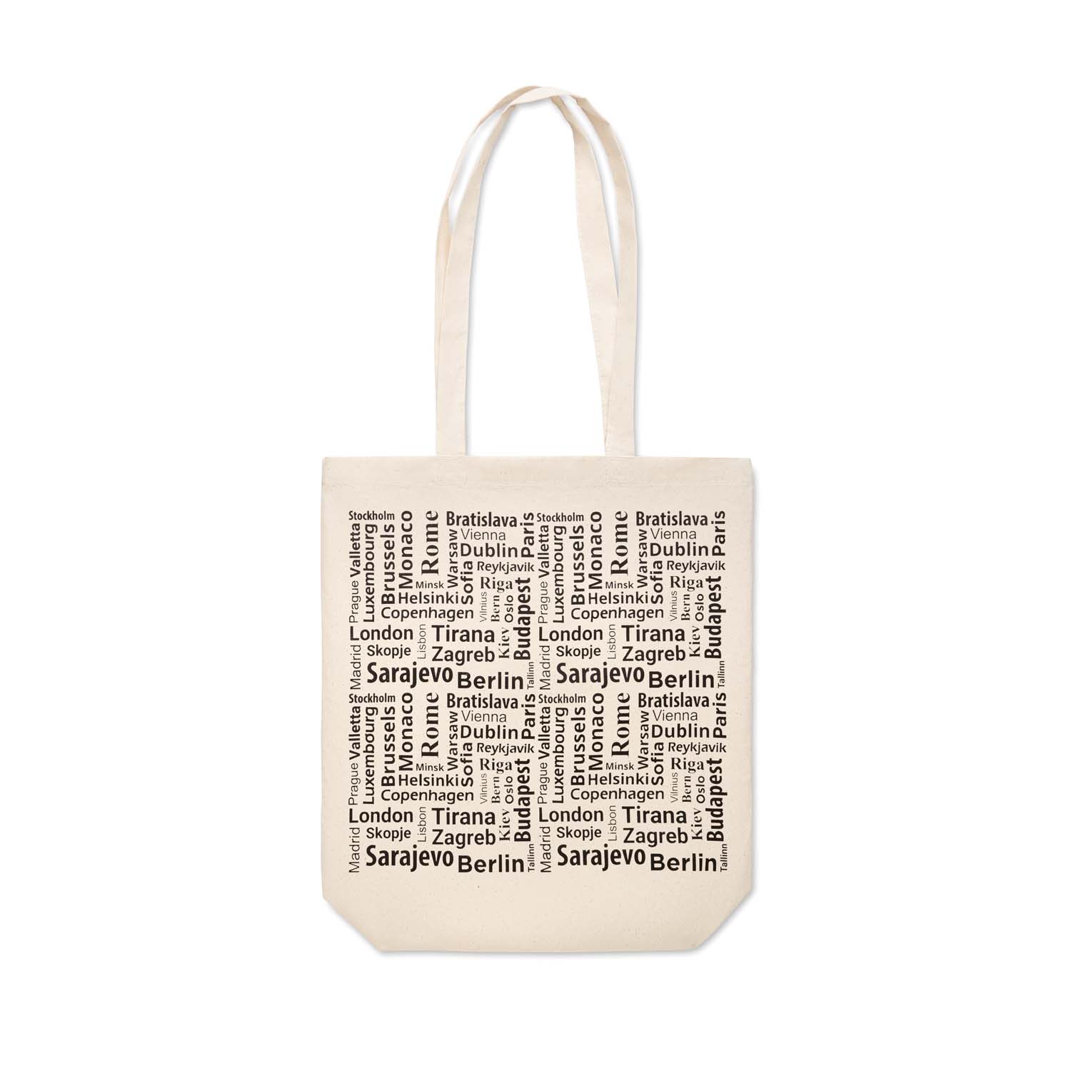 Taška z recyklované předspotřebitelské bavlny s 10 cm dnem a dlouhými držadly. Základní přírodní barva. Rozměry tašky: 38x10x42cm; ručky 70x2cm. Předspotřebitelská recyklovaná bavlna pochází z odpadu, který vzniká ve výrobním procesu bavlněných oděvů a tašek. Upozorňujeme, že není možné kombinovat sítotisk a digitálně vytištěné vzory.