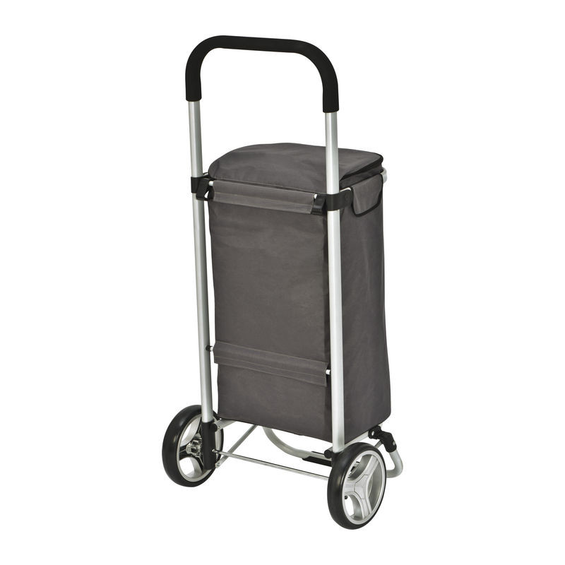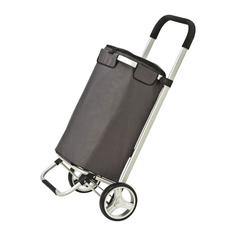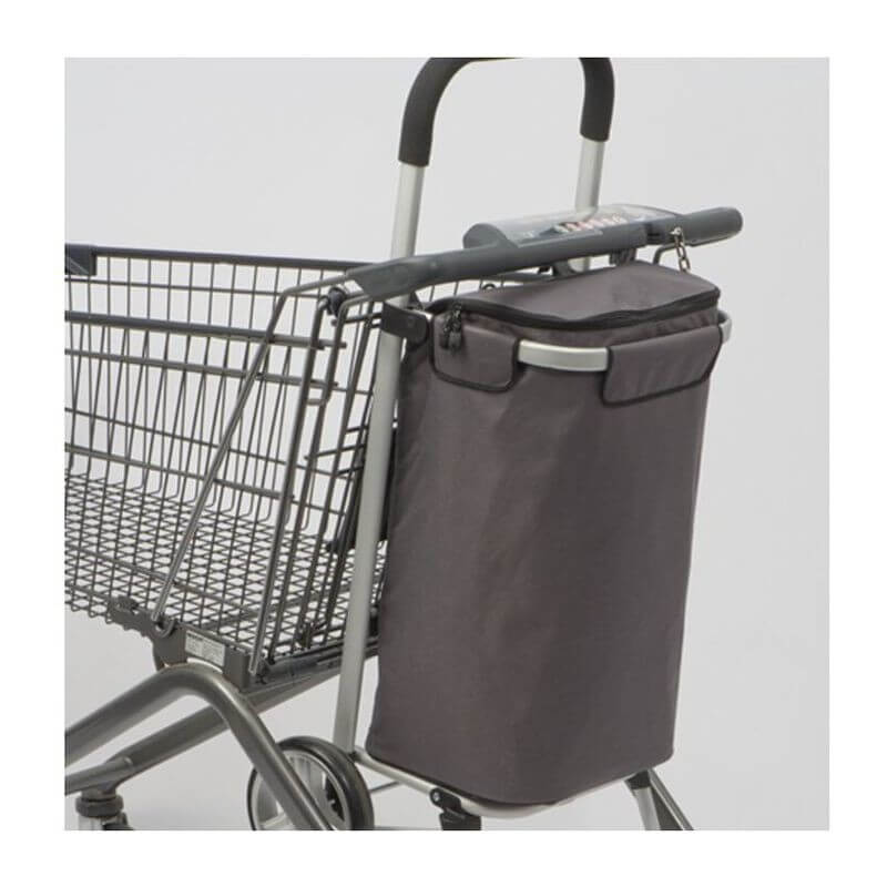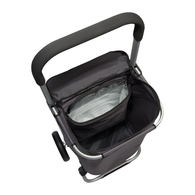 Skládací nákupní vozík s hliníkovým rámem vyrobený z polyesteru s integrovaným chladicím prostorem. Produkt obsahuje i speciální háček na zavěšení na nákupní košíky. Jako potisk doporučujeme sítotisk na přední stranu.