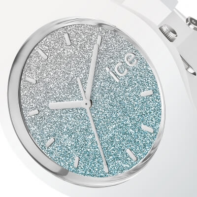 Tyto malé bílé jemné silikonové hodinky s kovovými detaily vás rozzáří díky atraktivnímu ciferníku se třpytivým odstupňovaným pozadím, které přechází z modré nebo růžové do stříbrné. Ideální pro svěží, barevný vzhled!