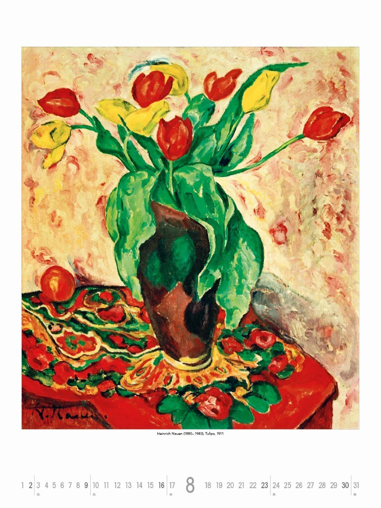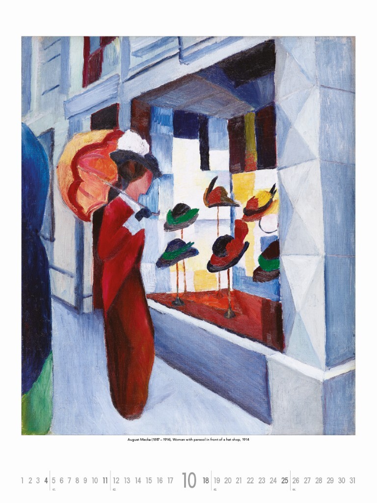 Objevte vývoj moderního umění v jedinečném kalendáři, který zachycuje přechod od světla a barev impresionismu Clauda Moneta k expresivním a abstraktním vizím Paula Kleea. Kalendář představuje díla významných umělců, jako jsou Wassily Kandinsky, August Macke, Heinrich Nauen a další průkopníci, kteří formovali umělecké směry na přelomu 19. a 20. století. Každý měsíc přináší výjimečná díla, která odrážejí převratné změny ve vnímání tvarů, barev a emocí.