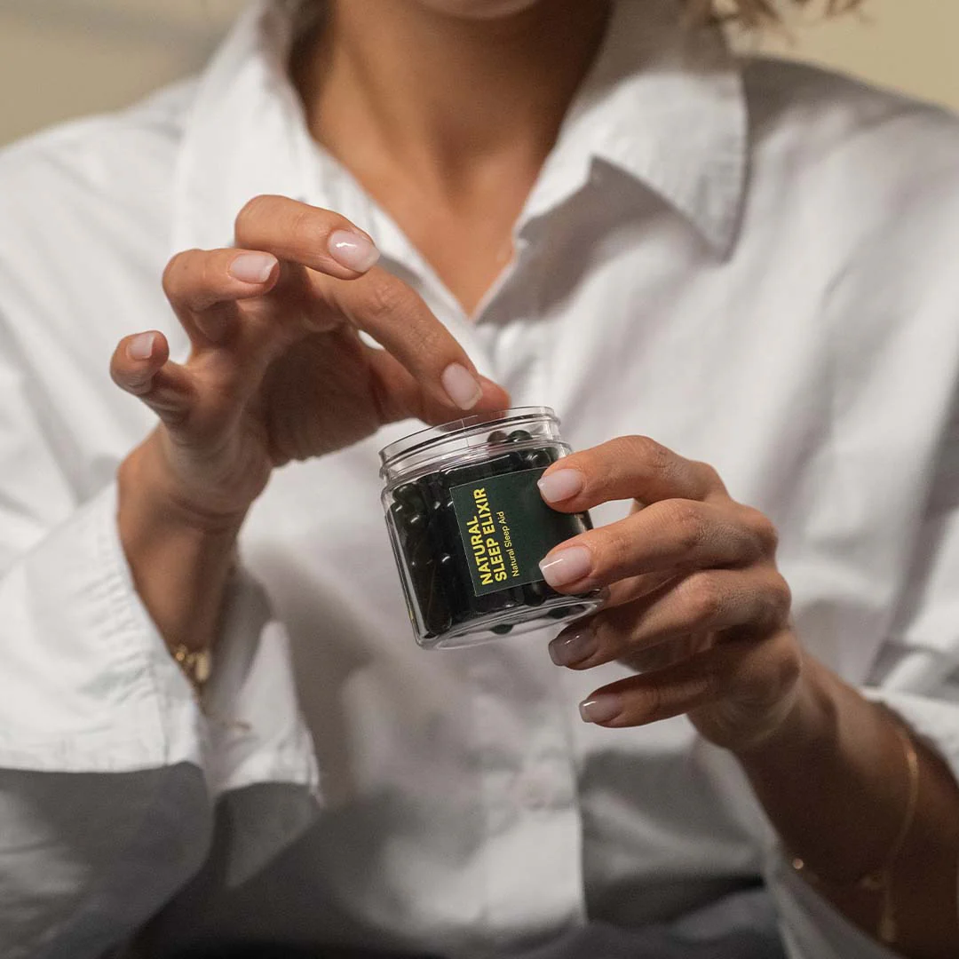 Sleep Elixir je bylinný nápoj s čistým složením pro klidný a nepřerušovaný spánek. Obsahuje výtažky z meduňky, mučenky, levandule, heřmánku, bazalky posvátné, L-theaninu a přírodního bisglycinátu hořečnatého. Uvolňuje tělo i mysl, zkracuje dobu usínání a zlepšuje kvalitu spánku. 100% přírodní zelené zbarvení kapslí díky chlorofylu. 60 kapslí (1 měsíc)