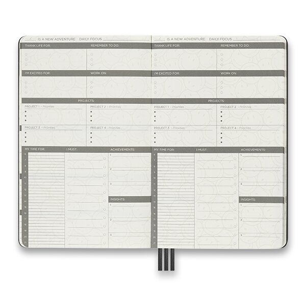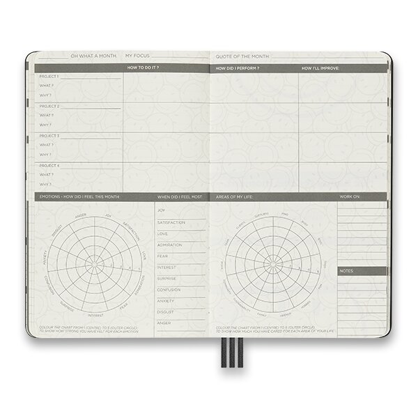 Diář vydán k 50letému výročí. SMILEY je průkopníkem tzv. SMILEY. pozitivní žurnalistiky s heslem Take the Time to Smile (Udělejte si čas na úsměv). Kreativita nás činí šťastnými a štěstí nás činí kreativními, takže zvedni pero nebo tužku a začni brát své štěstí vážně. Nedatované znamená, že můžete začít plánovat kdykoli během roku, stačí vyplnit data a začít. Speciální obsah zahrnuje citáty, které motivují a inspirují.