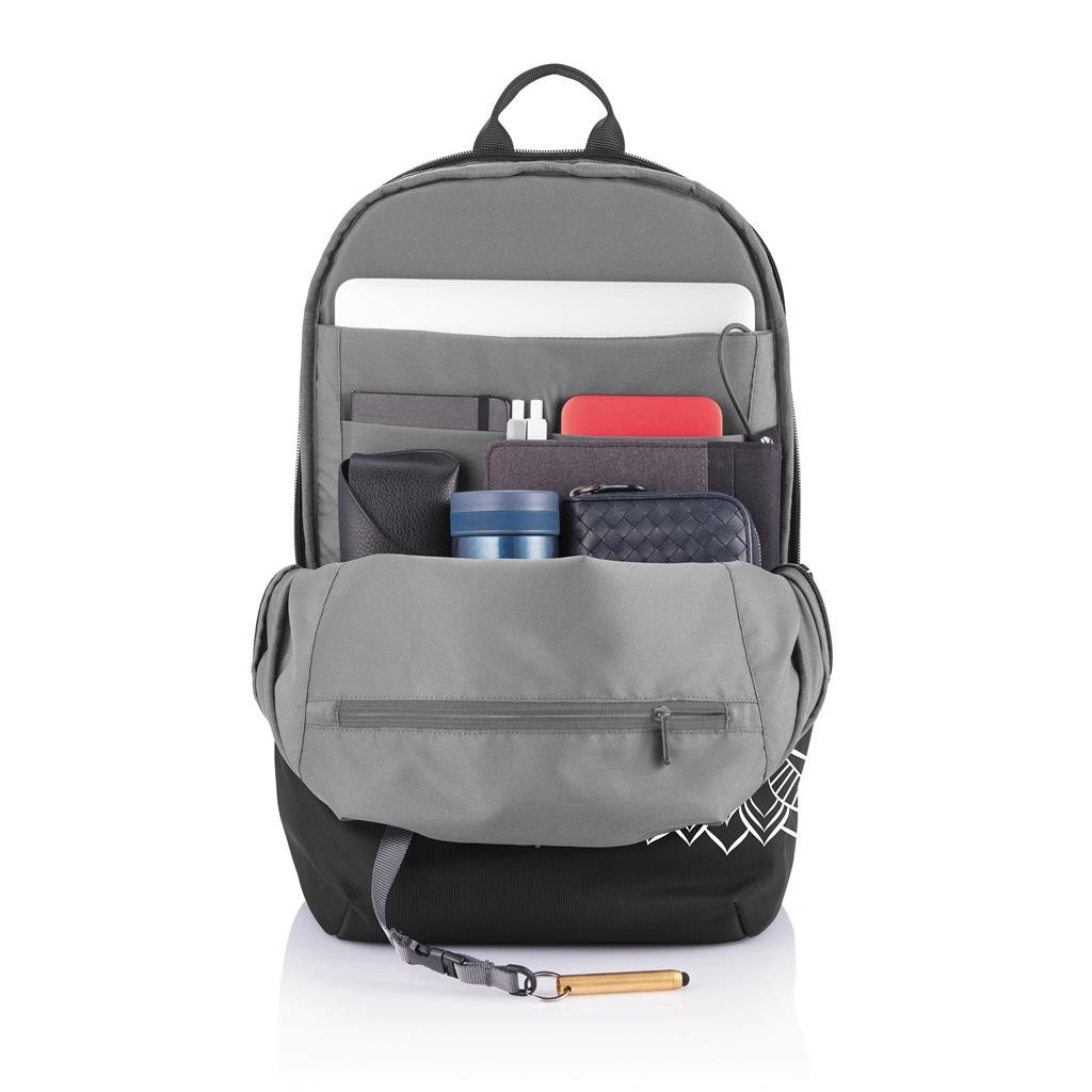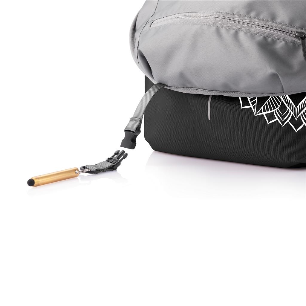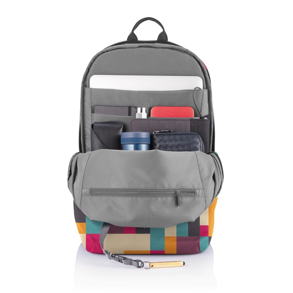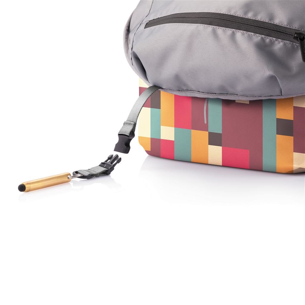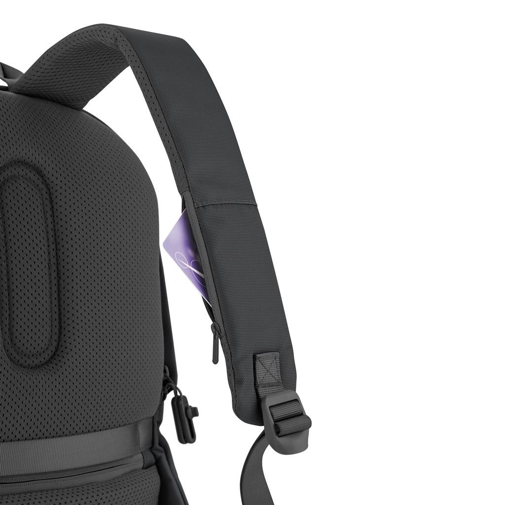 Do školy, do práce nebo na výlet. Ikonický nedobytný batoh Bobby v provedení Soft s ještě bezpečnějším systémem skrytých kapes, díky dokonalejším jezdcům zipu. Kapsy s RFID ochranou, prostorný univerzální hlavní oddíl, polstrovaný oddíl na 15,6" notebook, kapsa na tablet nebo zápisník, chytré malé kapsy a klíčenka. Rozšiřitelná vrchní část poskytuje dodatečný prostor pro oblečení, knížky nebo další každodenní potřeby. Integrovaný USB nabíjecí port vyrobený z vodě repelentního materiálu. Vyrobeno z rPET s technologií AWARE™ pro doložení skutečného obsahu recyklátu. Na výrobu každého kusu bylo použito 39 PET lahví a uspořeno bylo 23 litrů vody. Ochranný vzor®
