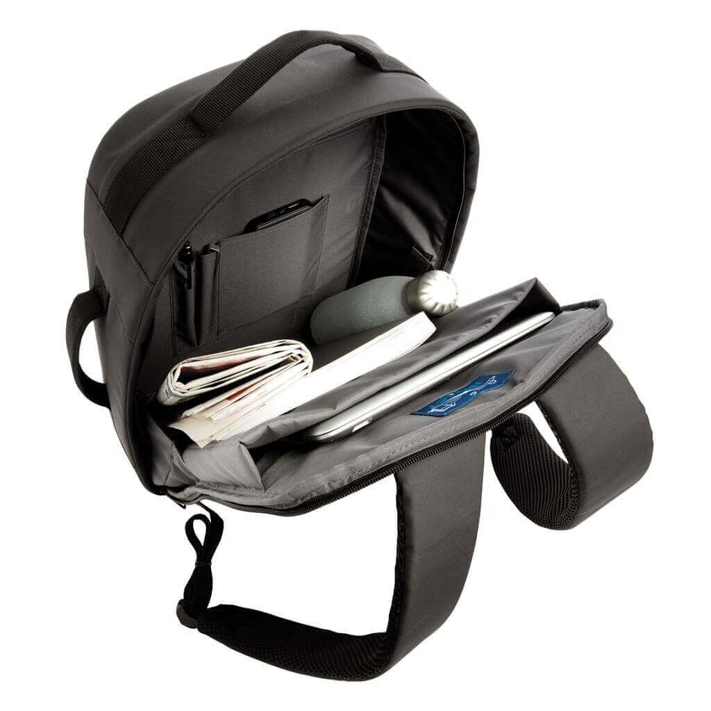Moderní nedobytný batoh v čistém minimalistickém designu vhodném pro pracovní i volnočasové využití. Rozměrný hlavní oddíl s prostorem pro až 15,6" notebook, množství obyčejných kapes i kapes na zip. Vnější část i vnitřní podšívka jsou vyrobeny ze 100 % polyesteru AWARE™ získaného z recyklovaných PET lahví. AWARE™ využívá skutečně recyklované materiály, které jsou použitím speciální technologie dohledatelné od jejich zdroje. Recyklace má pozitivní vliv na životní prostředí a při výrobě šetří obrovské množství vody. Bez PVC.