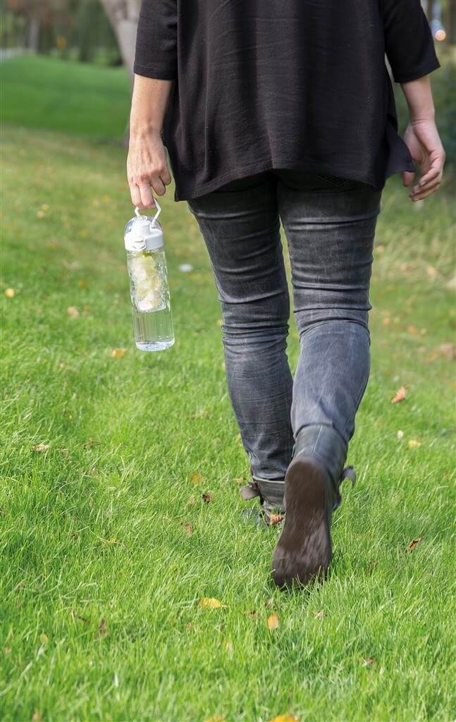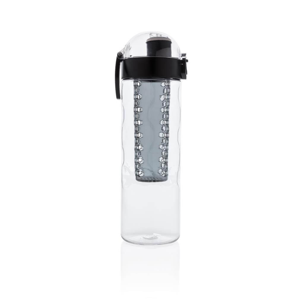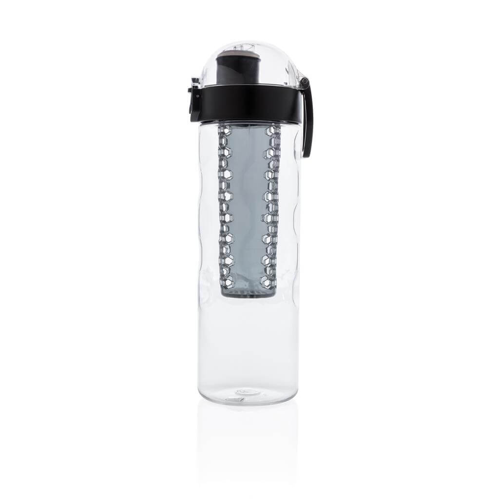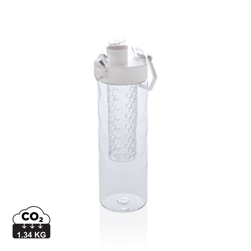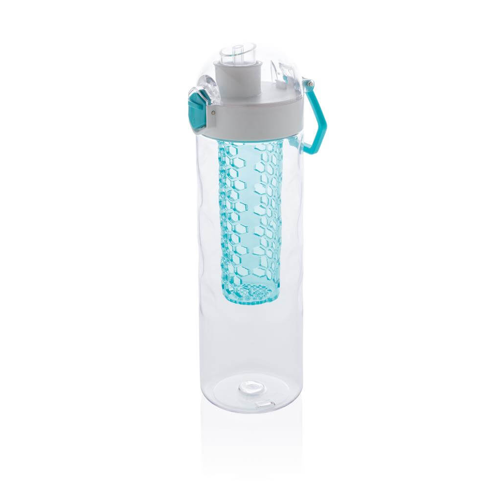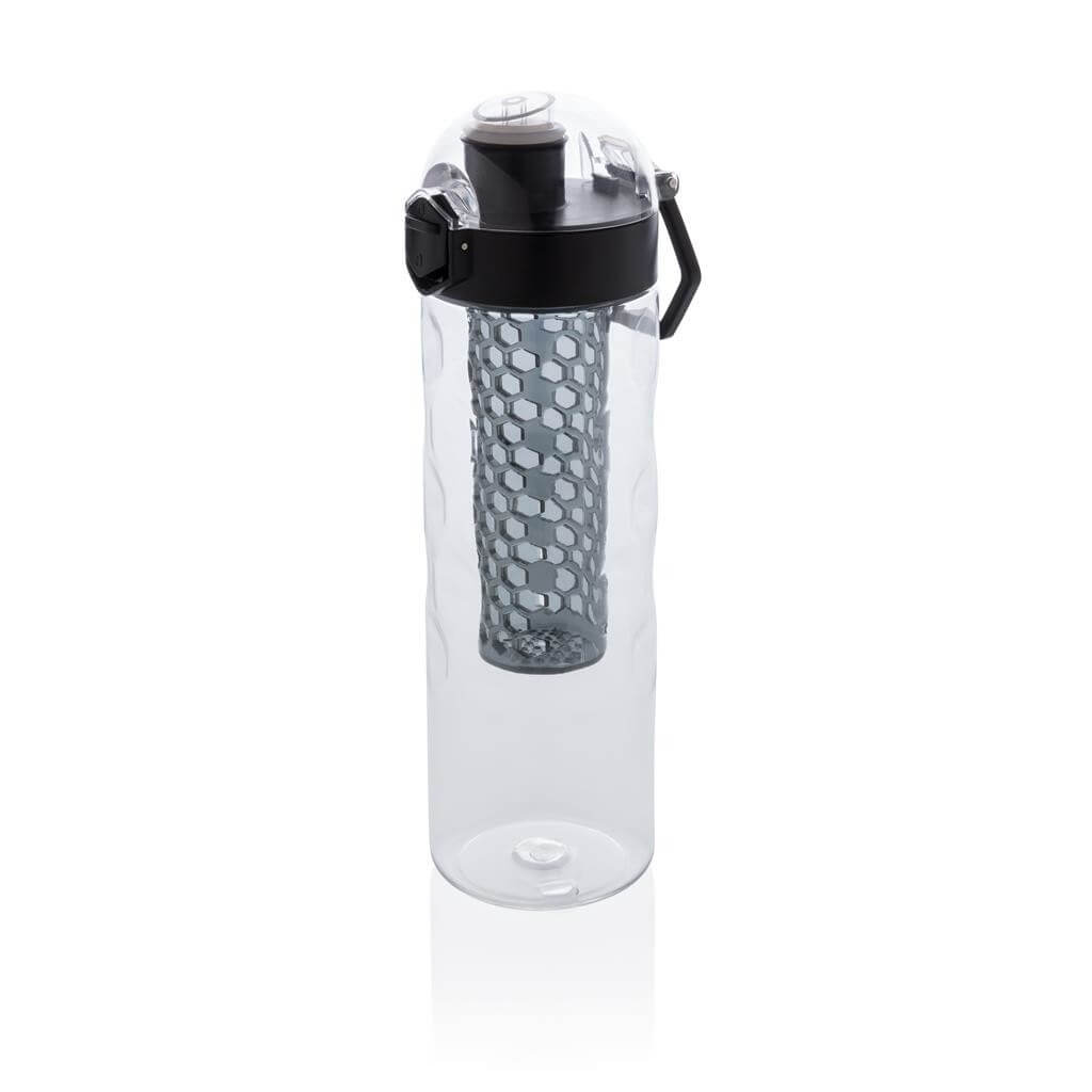 Praktická láhev z odolného moderního tritanu s designovými prvky medových pláství pro pohodlné pití jednou rukou. Otevírání víčka pomocí uzamykatelného mechanizmu na stlačení, které chrání proti náhodnému vylití. Včetně infuseru pro zdravé osvěžení nápojů ovocem a plastového poutka pro nošení. BPA free, neabsorbuje pachy. Objem: 700ml. Ochranný vzor® PMS color 1: Black PMS color 1: White PMS color 1: 319
