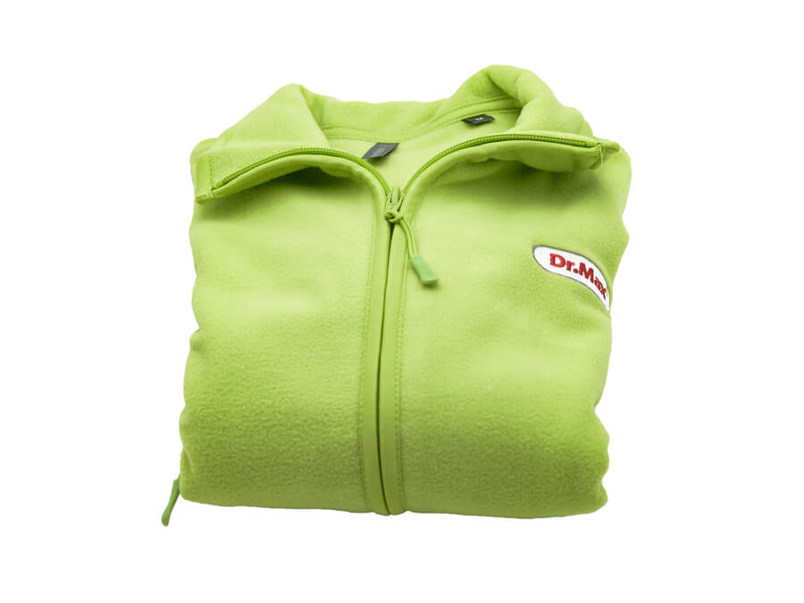 200g/m², 200g/m², 100% polyester, úprava proti žmolkování Střih zdůrazňující postavu, plastový zip barevně ladí, široké pletené lemy tón v tónu na stojáčku, manžety a pásek, 2 kapsy se zipem