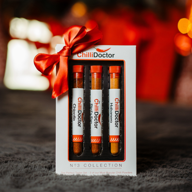 Malá dárková sada tří nejoblíbenějších chilli koření. Váháte, které chilli koření si vybrat? V dárkovém balení Chilli Doctor najdete výběr tří nejoblíbenějších chilli koření v praktických tubách: aromatické kouřové Chipotle, intenzivně pálivé Bird's Eye a tropicky ovocné Habanero. Potěší každého, kdo si chce vychutnat poctivou (ale ne extrémní) pálivost a chuť chilli.