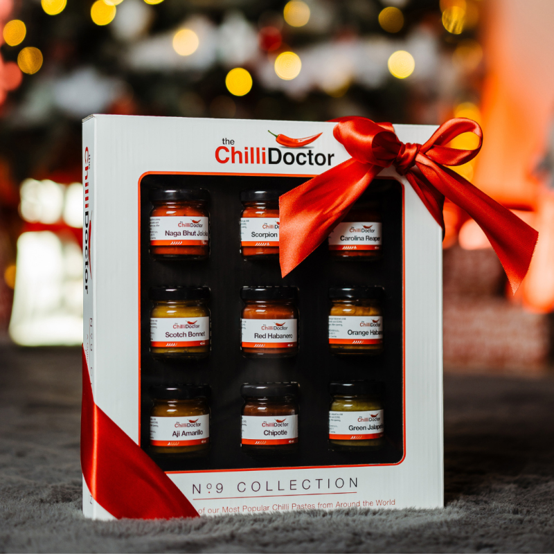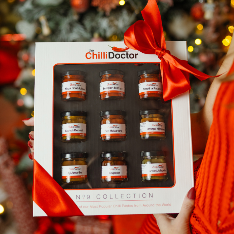 Dárek, který vám zaručeně vehnal slzy do očí. S exkluzivní dárkovou krabičkou tekuté chilli kaše poznáte našich 9 nejlepších chilli produktů. Degustační balení devíti 40ml lahviček je jako bonboniéra plná nových chutí, barev a pálivosti. Ochutnejte naše nejprodávanější druhy, od mírně pálivého Aji Amarilo přes poctivě pálivé Habanero až po extrémní Trinidad Scorpion nebo Carolina Reaper.