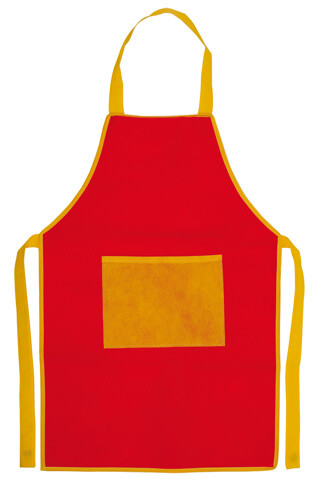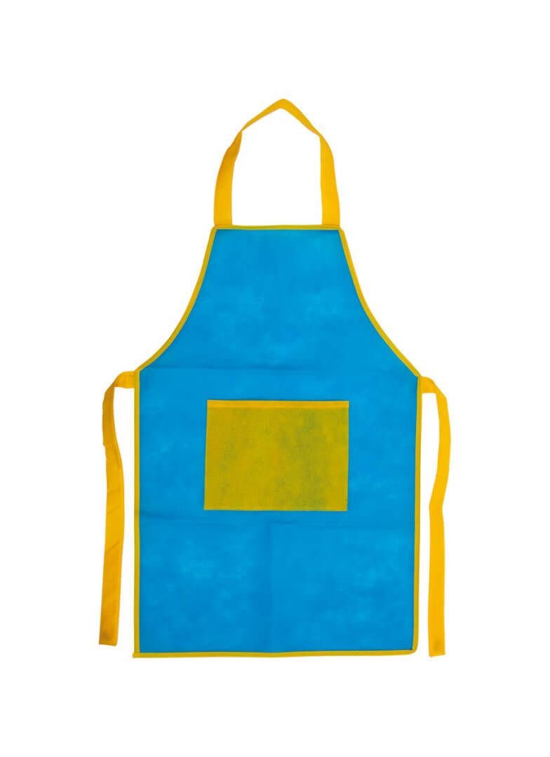 Zástěra pro děti s přední kapsou z netkané textilie.