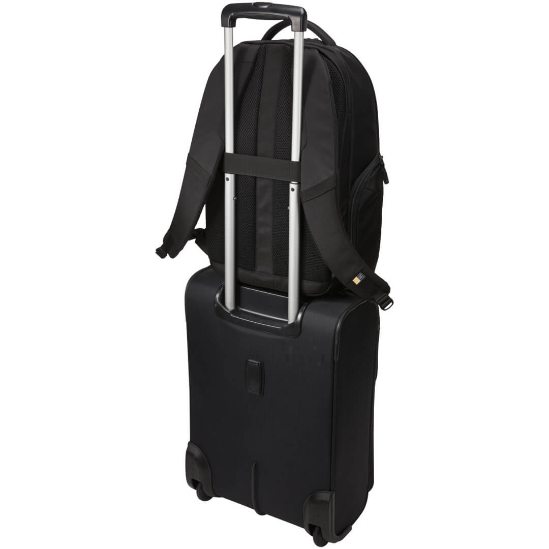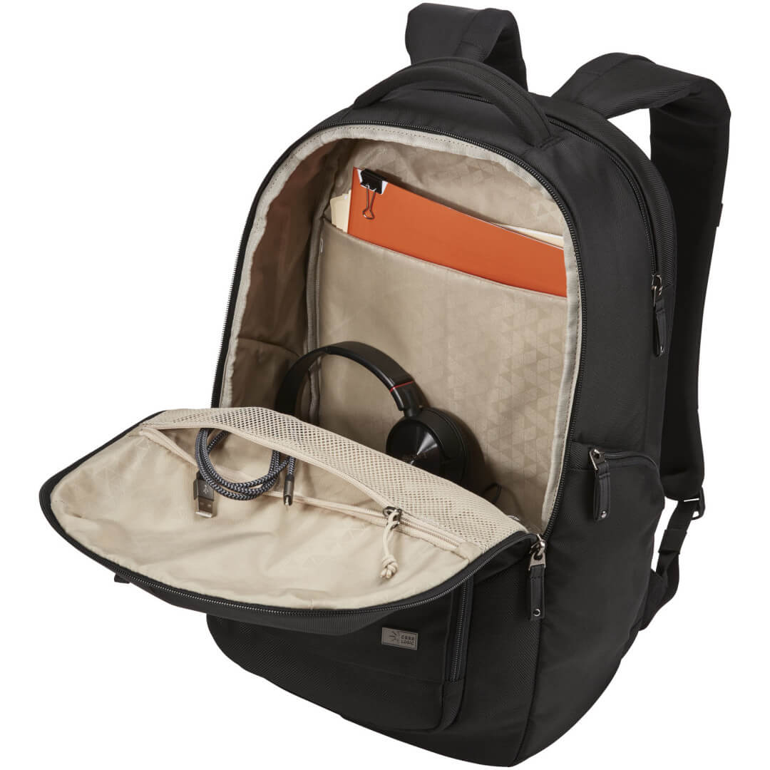 Obsahuje velkou hlavní přihrádku na zip s polstrovaným obalem na 15,6" notebook a 10,1" tablet a síťovanou kapsu na zip pro kabely a příslušenství. Dodává se s předním organizačním panelem pro ukládání malé elektroniky, kabelů, příslušenství, vizitek a klíčů. Obsahuje roztažitelné boční kapsy na láhev na vodu nebo napájecí adaptér, polstrované ramenní popruhy, prošívaný zadní díl ze vzdušné síťoviny, měkkou rukojeť a průchozí tunel. Záruka Case Logic: 25 let.