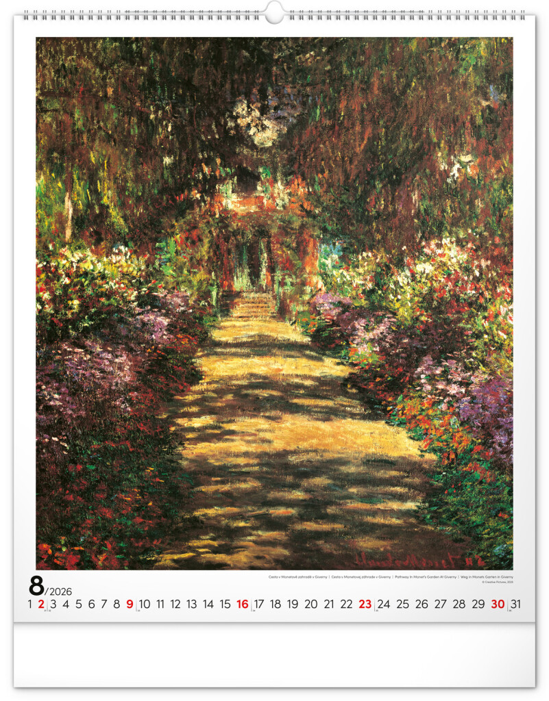 Seznamte se s dílem předního představitele impresionismu Clauda Moneta. Obrazy barevných krajin a postav ožívají na velkoformátovém kalendáři vysoké gramáže.