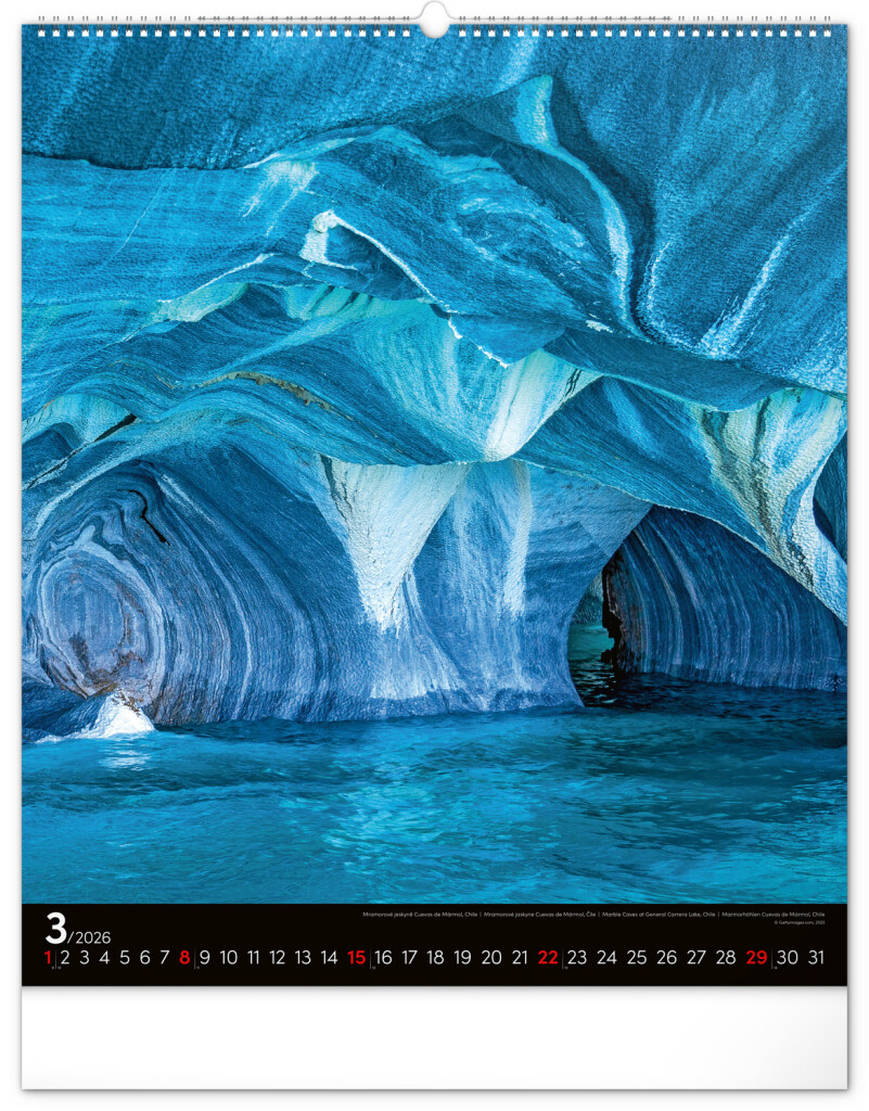Kalendář Platinum Collection obsahuje velkoformátové fotografie přírodních scenérií z exotických zemí. Zavěste si na zeď okno do světa!Fotografie islandské přírody nebo arménského kláštera doplňuje univerzální kalendář na černém pozadí.