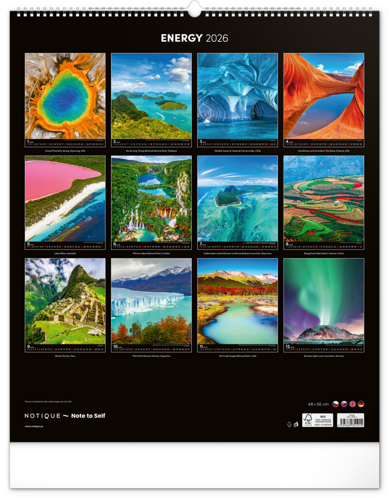 Kalendář Platinum Collection obsahuje velkoformátové fotografie přírodních scenérií z exotických zemí. Zavěste si na zeď okno do světa!Fotografie islandské přírody nebo arménského kláštera doplňuje univerzální kalendář na černém pozadí.Rozměr: 14...