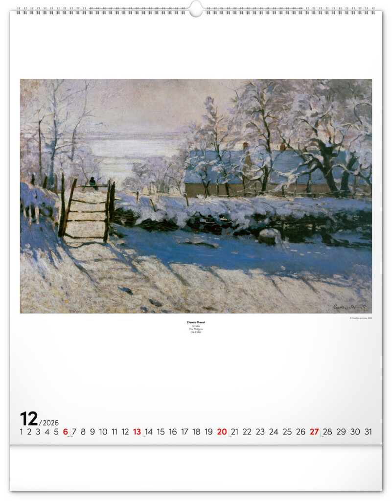 Edgar Degas, Paul Cézanne, Auguste Renoir a další světoznámí impresionističtí malíři jsou zastoupeni v tomto velkoformátovém kalendáři s reprodukcemi jejich obrazů. Součástí kalendáře je jednoduchý univerzální kalendárium a popisky ke každému obrazu ve čtyřech jazycích.