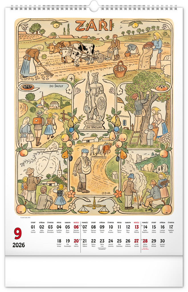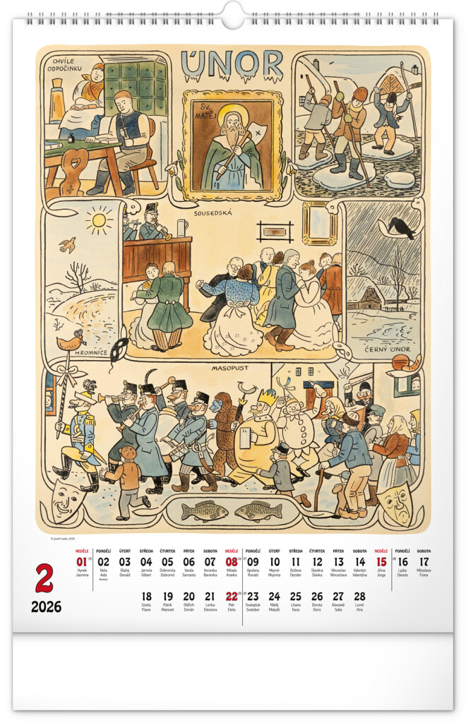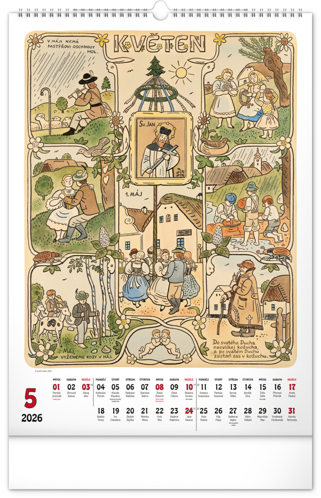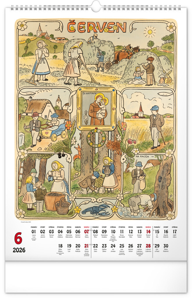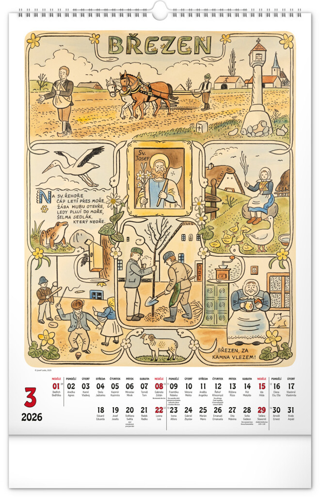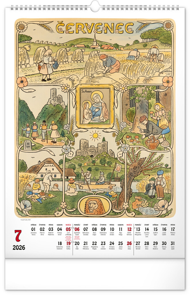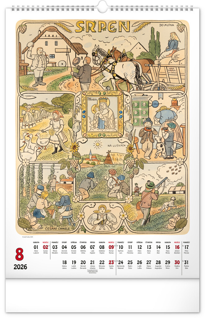 Nástěnný kalendář s ilustracemi Jozefa Lady a pohádkovými motivy je vyroben v oblíbeném velkém formátu, který osvěží každý interiér. V kalendáři je rovnoměrně zastoupena čeština i slovenština, ilustrace doplňuje kalendárium s českými a slovenskými jmény, svátky, památnými dny a fázemi měsíce. U každého dne je prostor pro poznámky a víkend je barevně odlišen od všedních dnů.