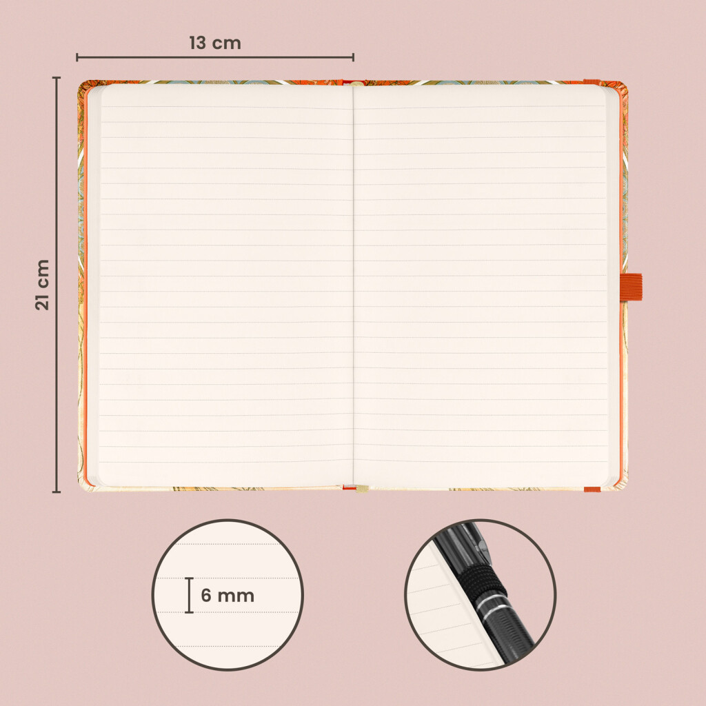 Vysoce kvalitní linkovaný zápisník z pevných desek s pružným uzávěrem, poutkem na tužku a vnitřní kapsou na drobnosti. Uvnitř najdete 172 tečkovaných stran na žlutém papíře pro zapisování všech vašich nápadů. Linkovaný zápisník můžete používat jako deník, k zapisování hlubokých myšlenek nebo pracovních poznámek.