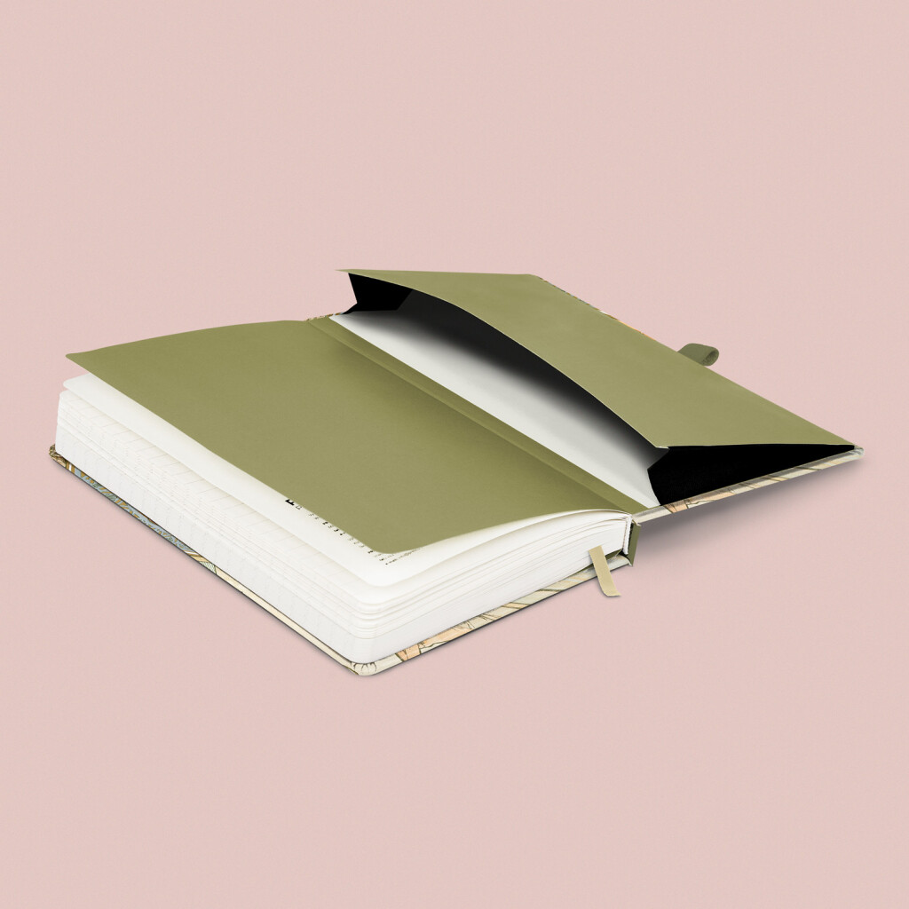Vazba: pevná knižní vazba s gumičkou a poutkem na tužku