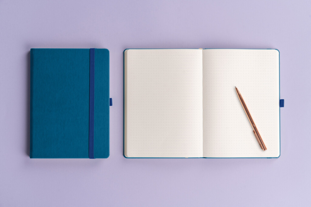 Vazba: tuhá knižní s gumičkou a poutkem na tužku